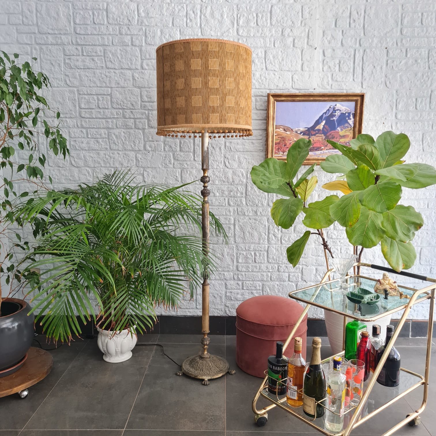 1930–50 arası Avrupa üretimi masif pirinç gövdeli lambader.