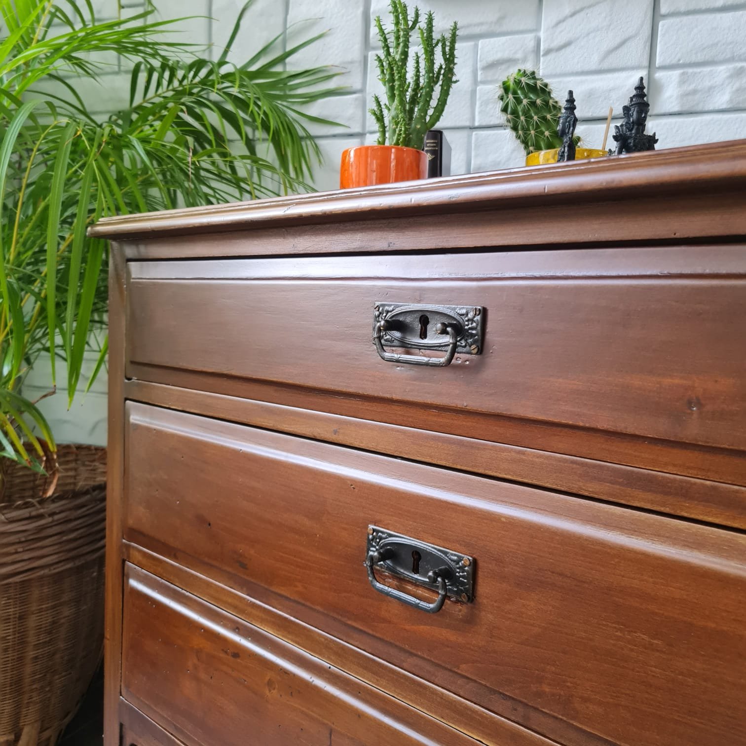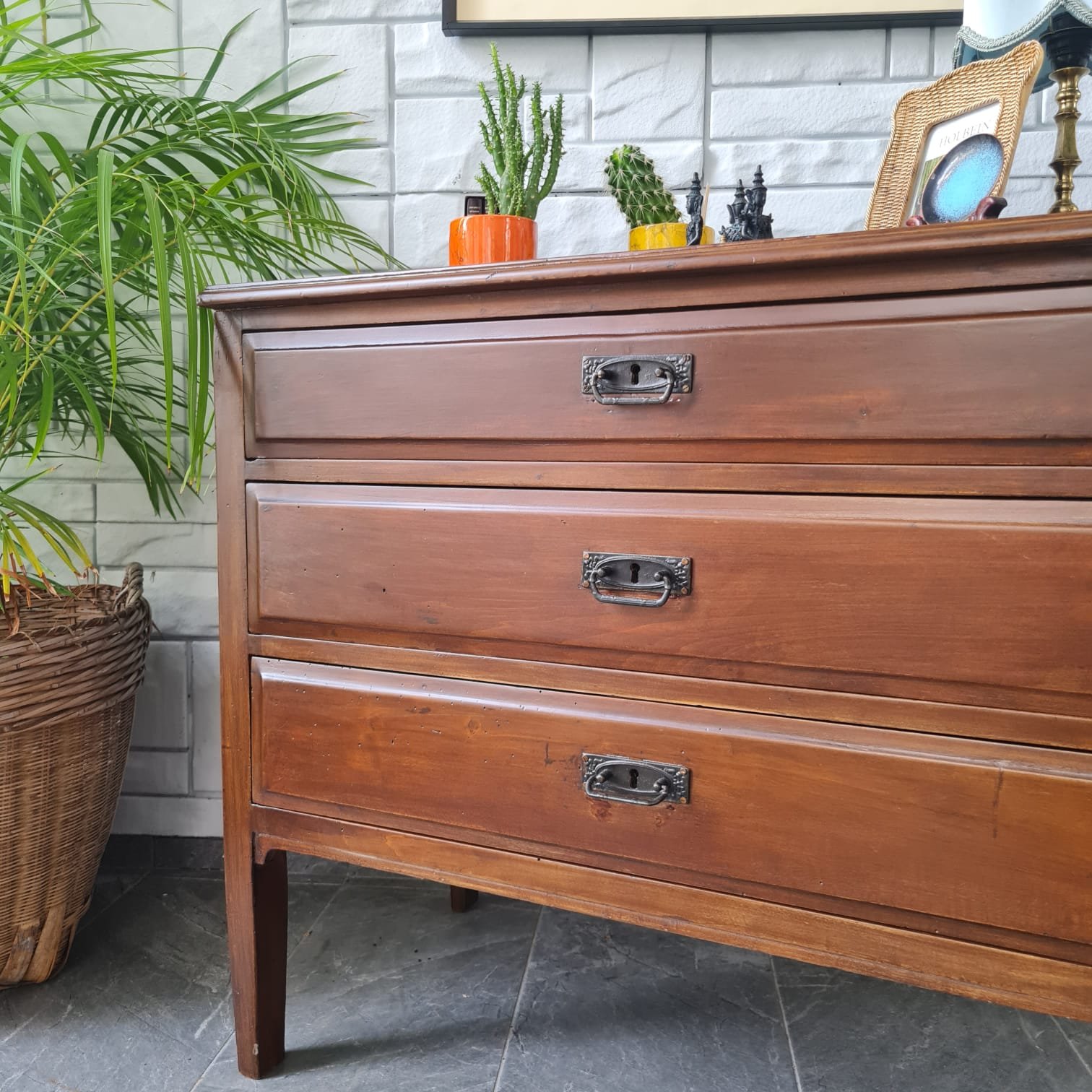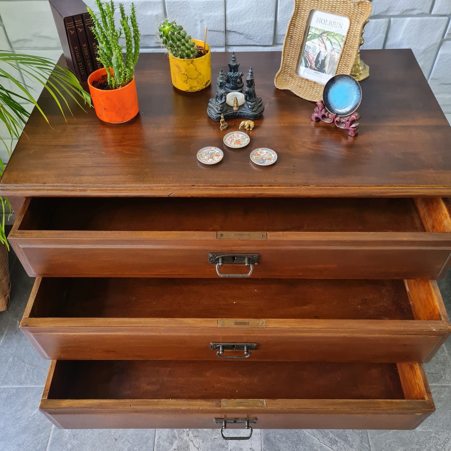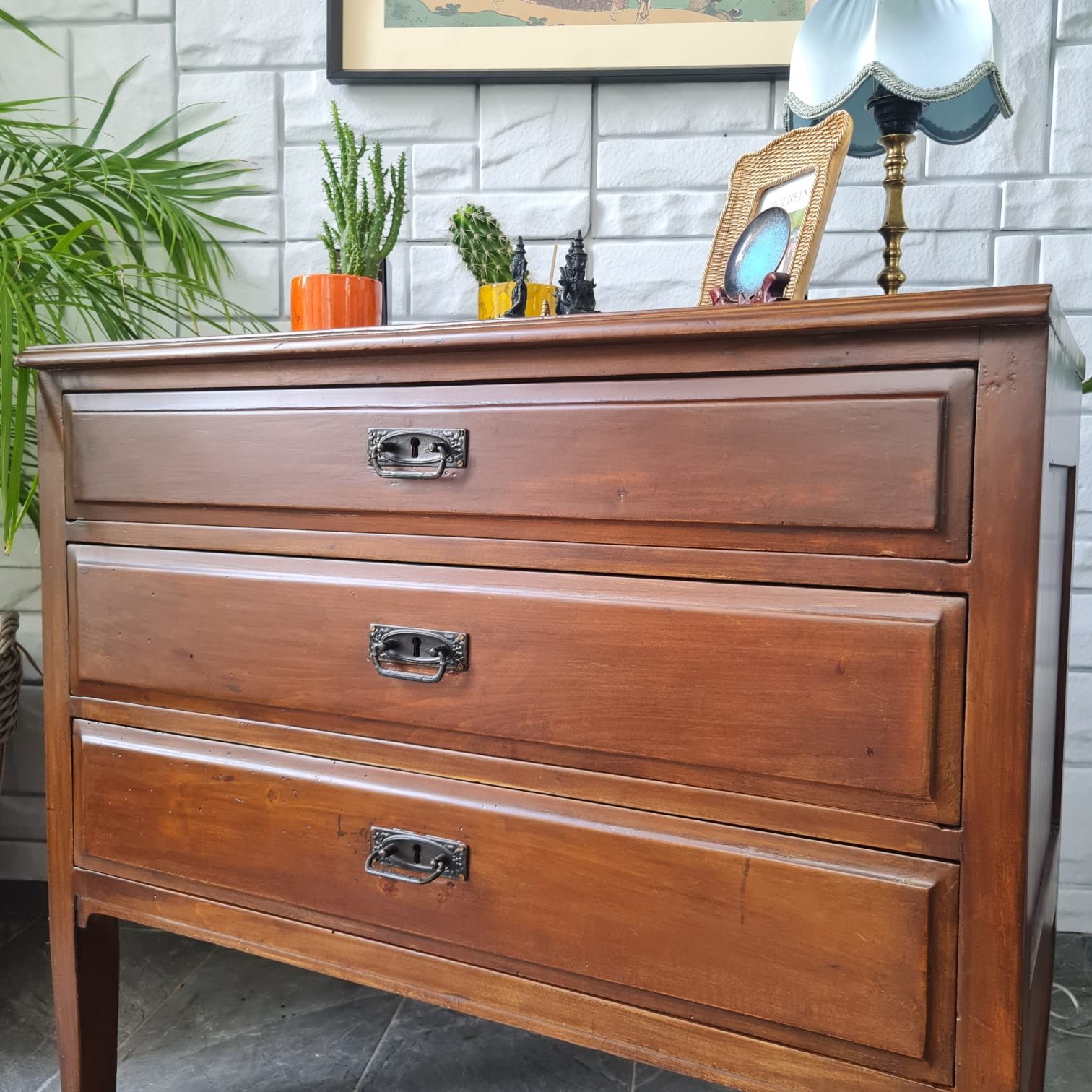 Çekmece kulpları ve kilitleri orijinal.