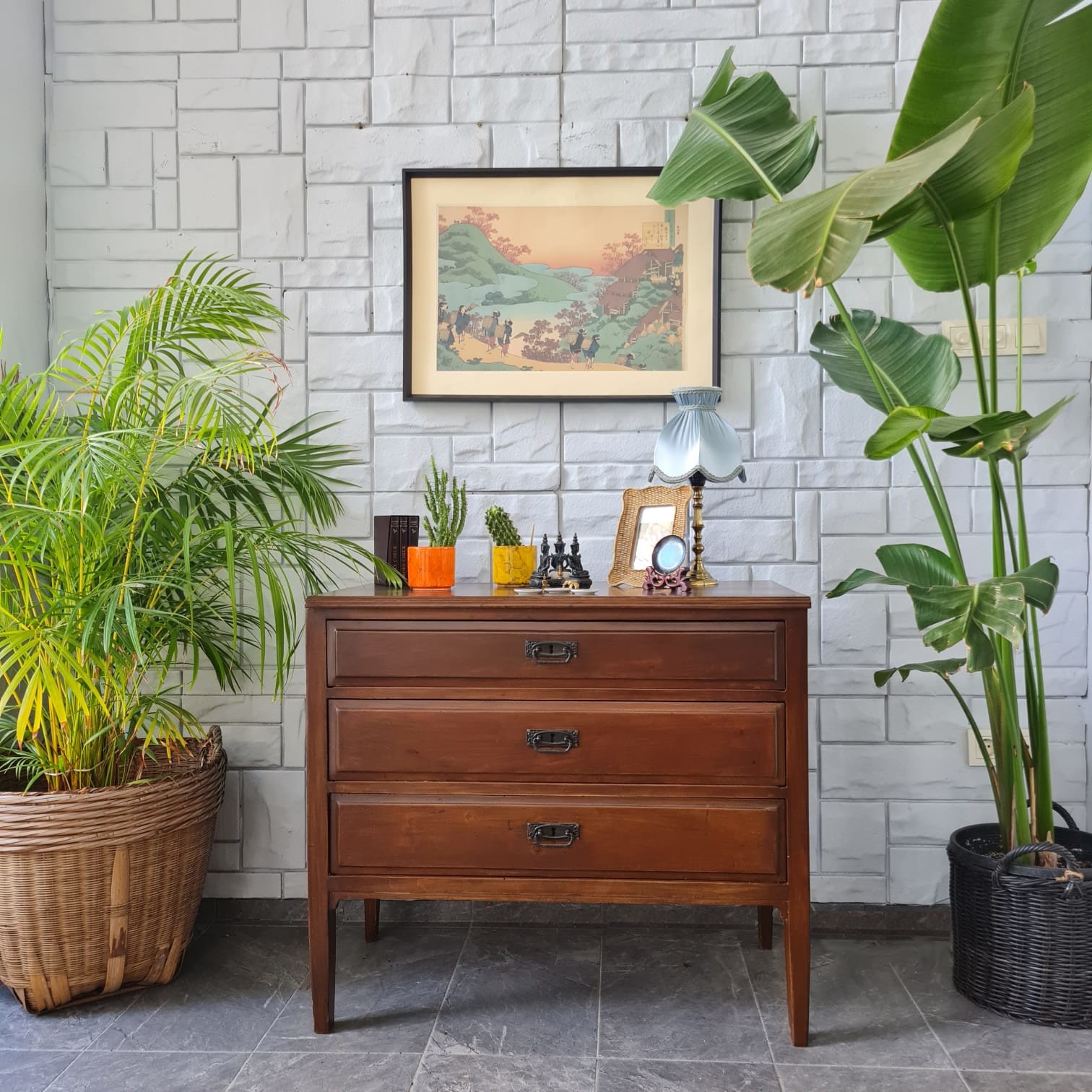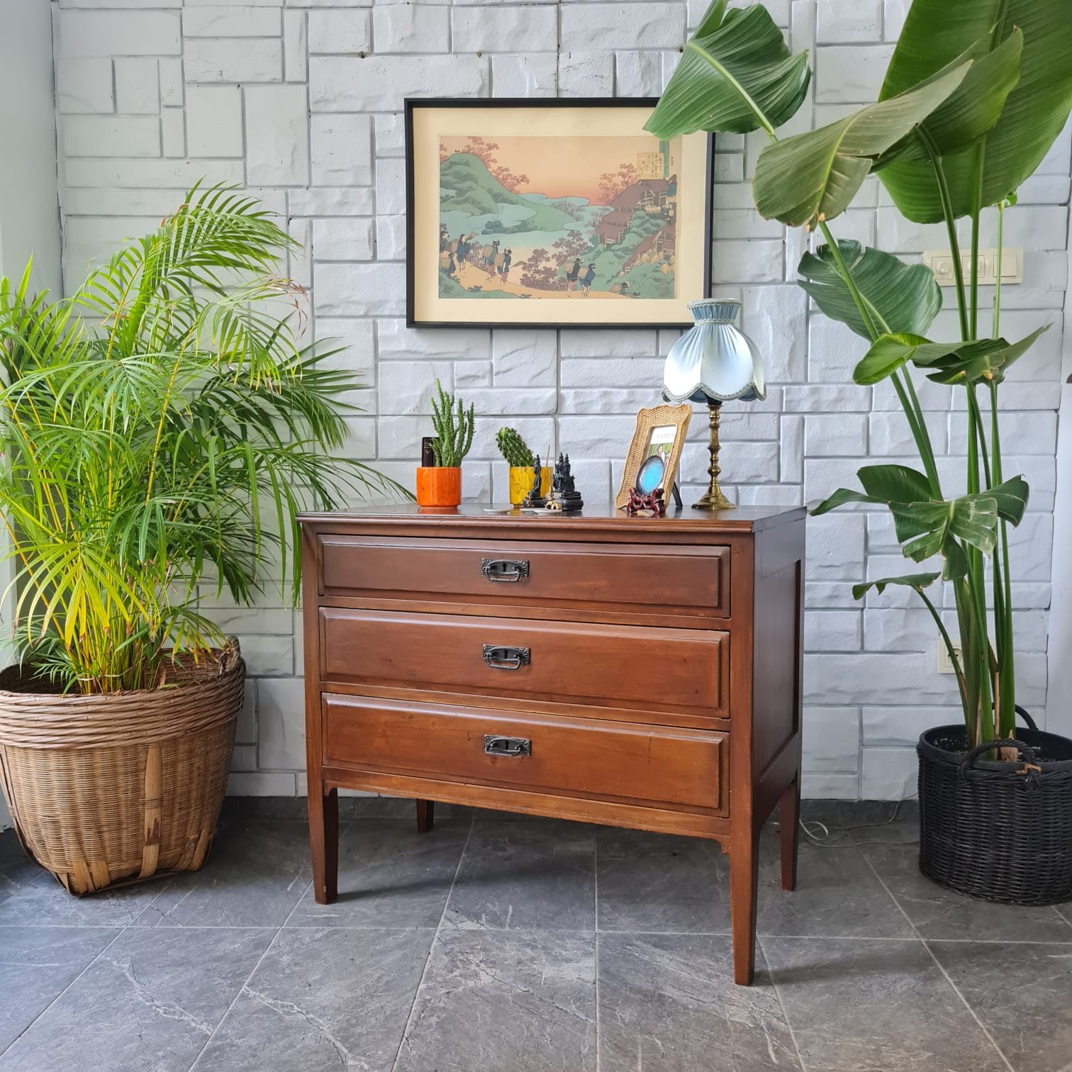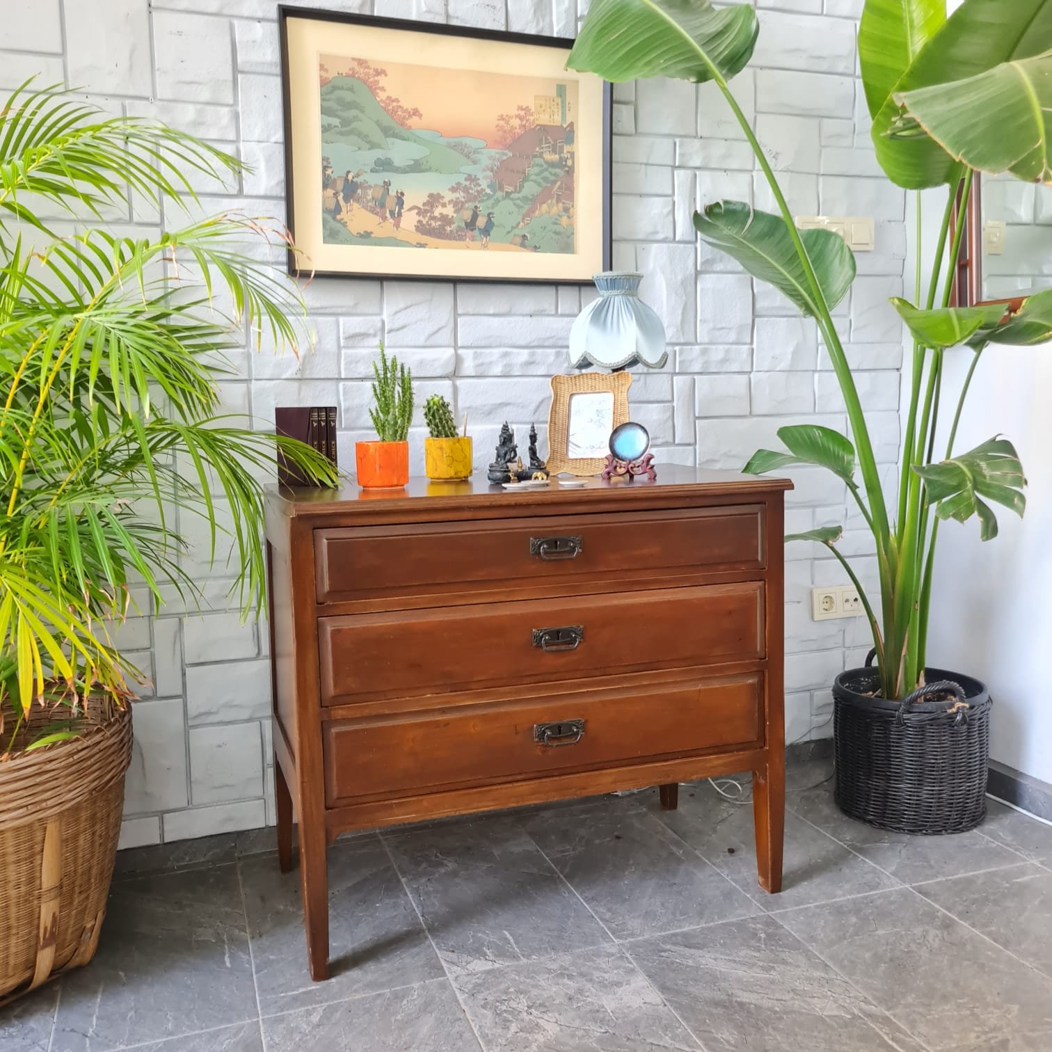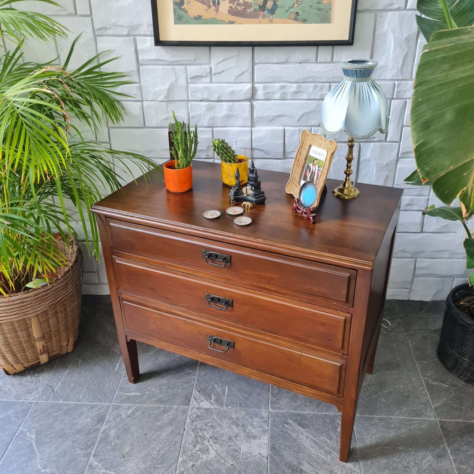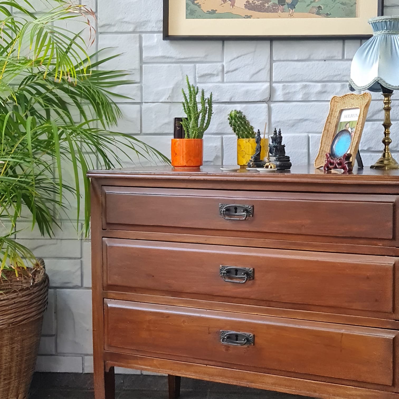 Çekmece kulpları ve kilitleri orijinal.