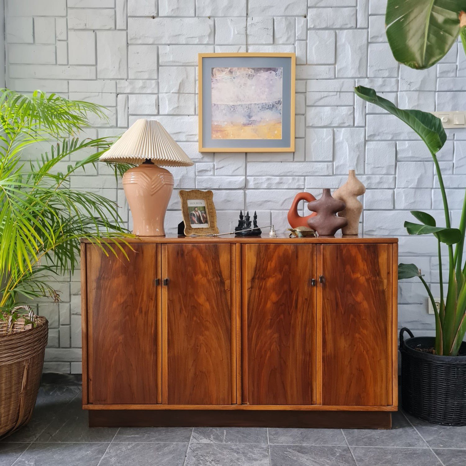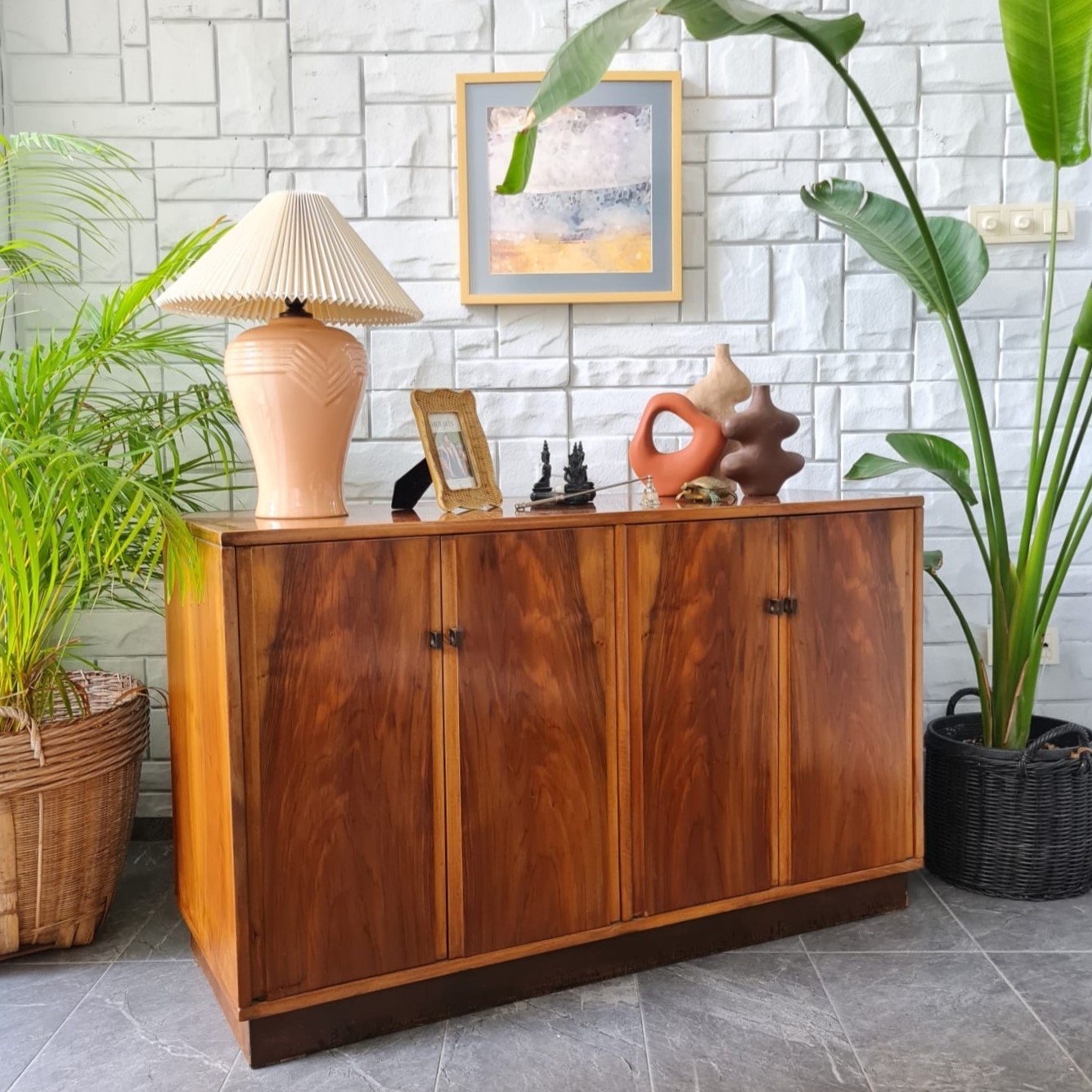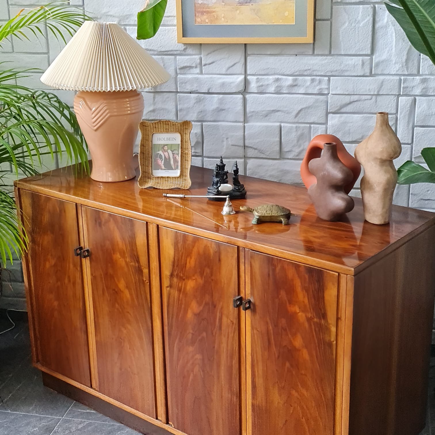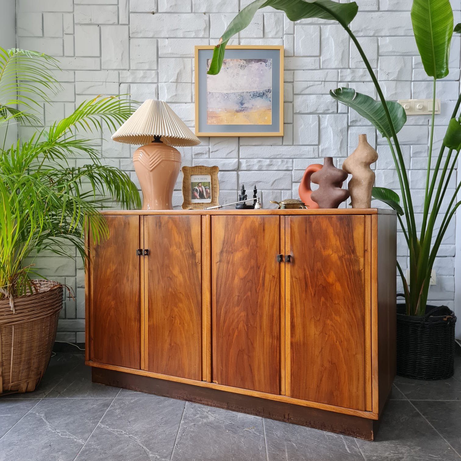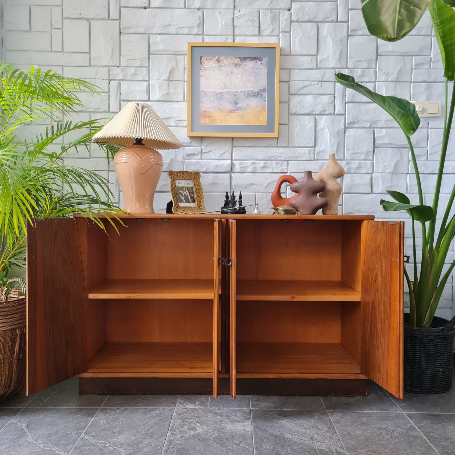 Dengeli oranlara sahip gövde yapısı, doğal ahşap yüzeyleri ve sade kulp detaylarıyla döneminin İskandinav etkili tasarım anlayışını taşıyan kullanışlı bir parça. Dört kapaklı düzeniyle güçlü bir depolama hacmi sunuyor. İç bölümde yer alan raflar günlük kullanım için pratik bir yerleşim sağlıyor.