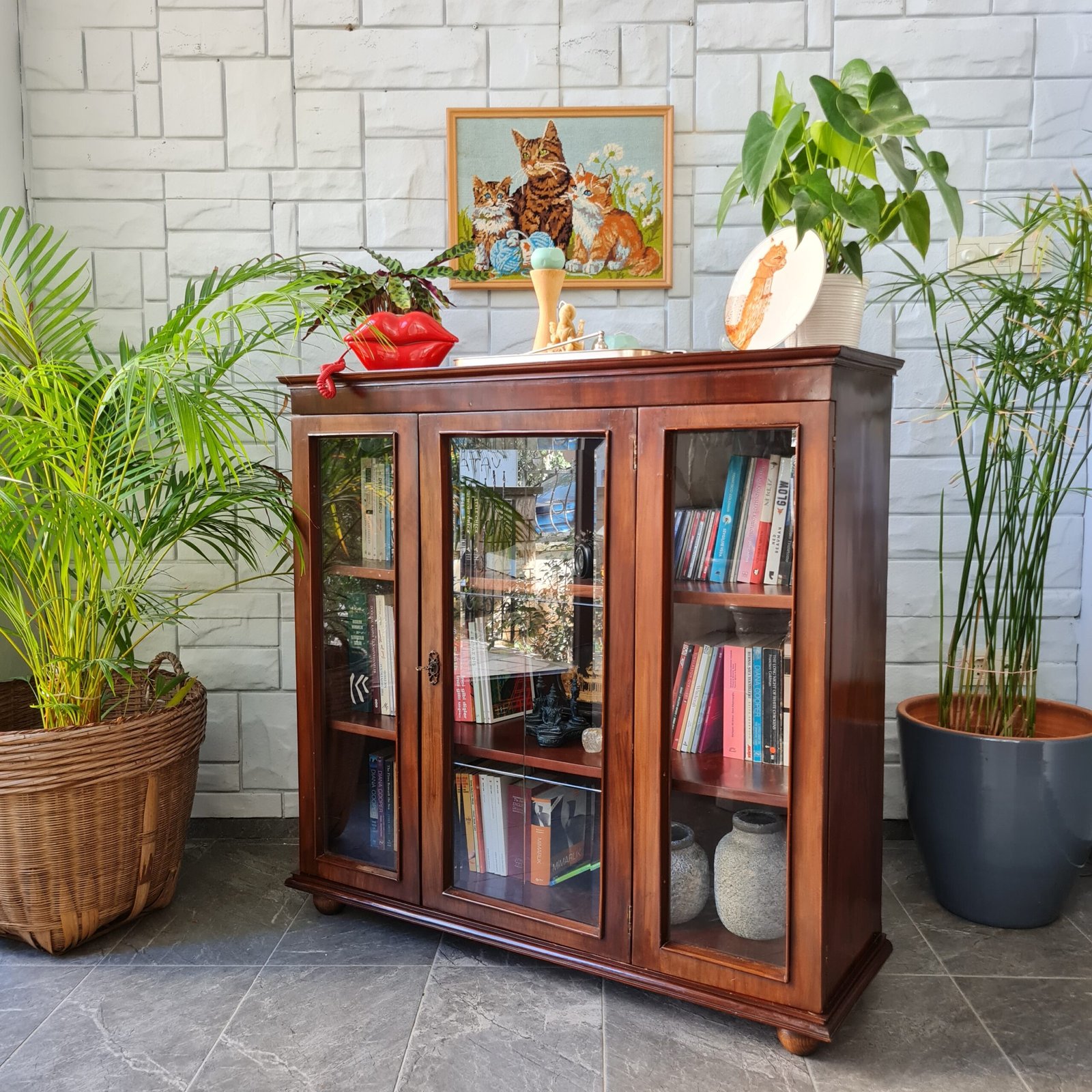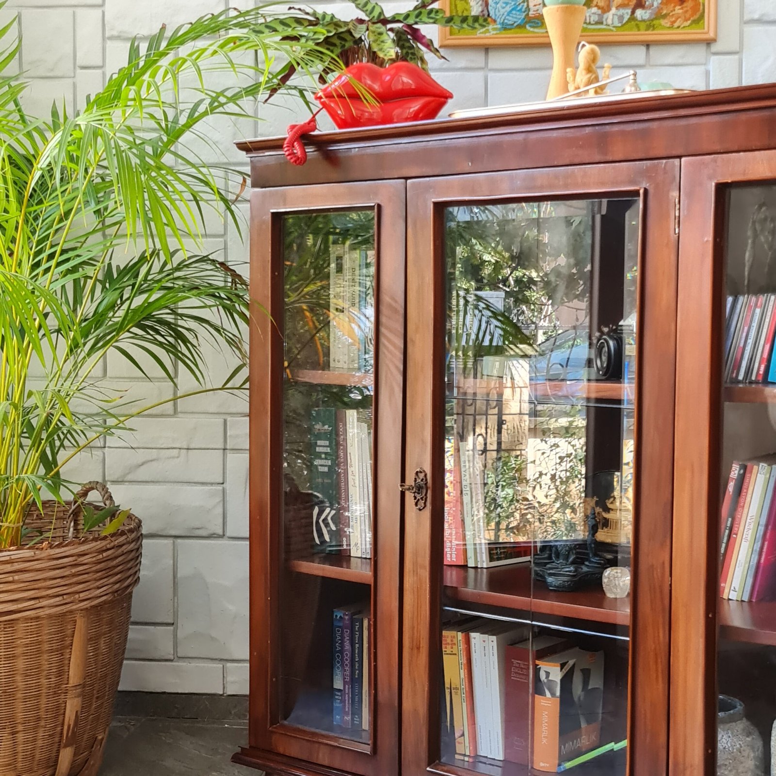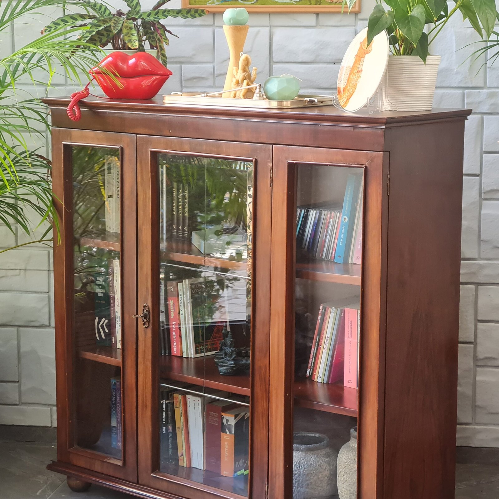 Son derece yüksek kondisyonda olan orijinal anahtarlı masif ceviz kitaplık, sağlam yapısı ile yıllarca kullanıma hazırdır. Bu benzersiz parça, evinize ya da ofisinize hem karakter katacak hem de depolama çözümünüz olacak.