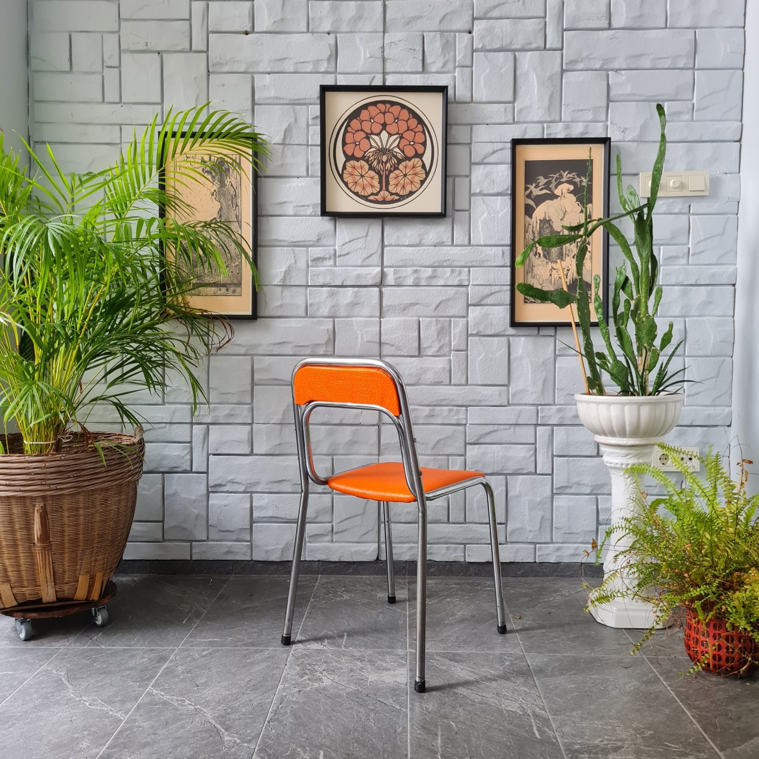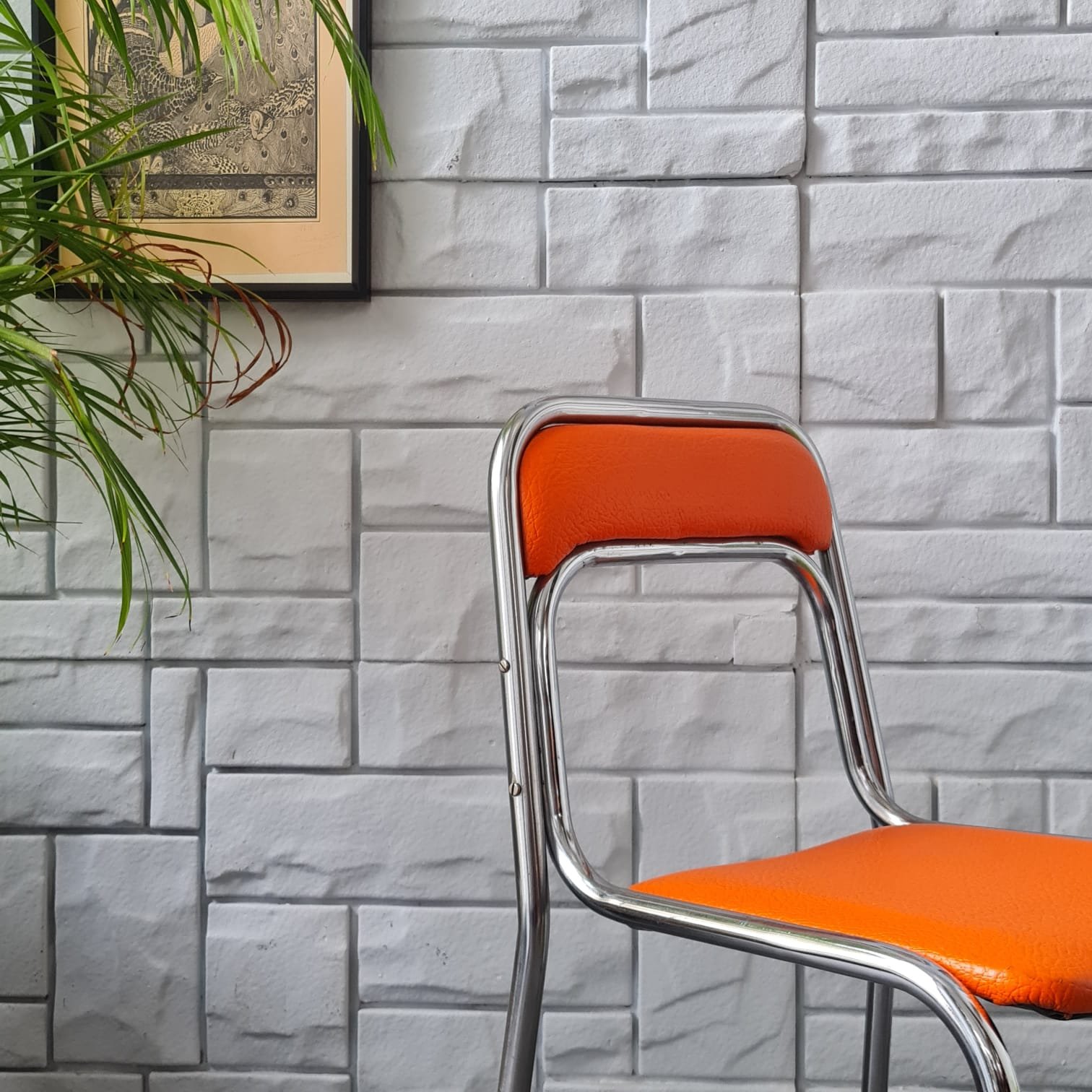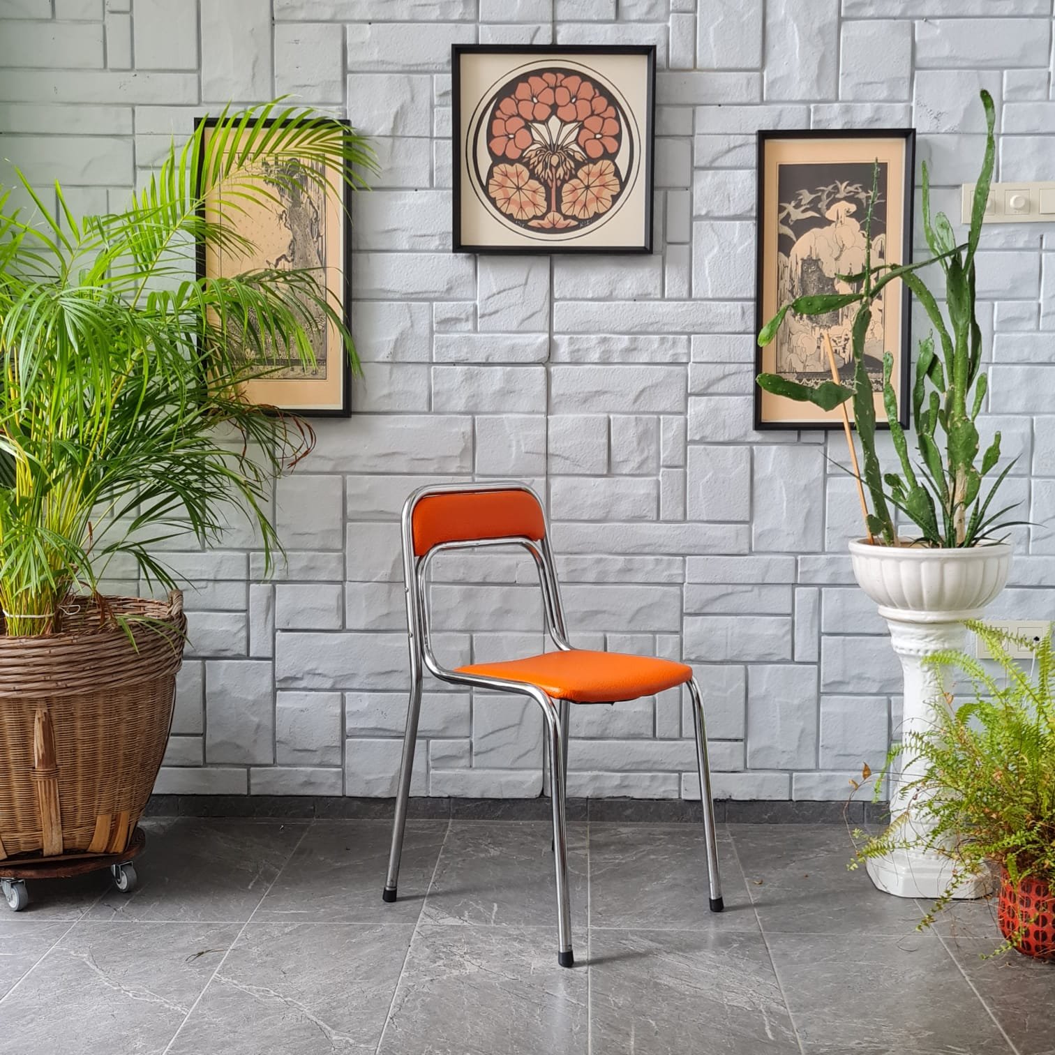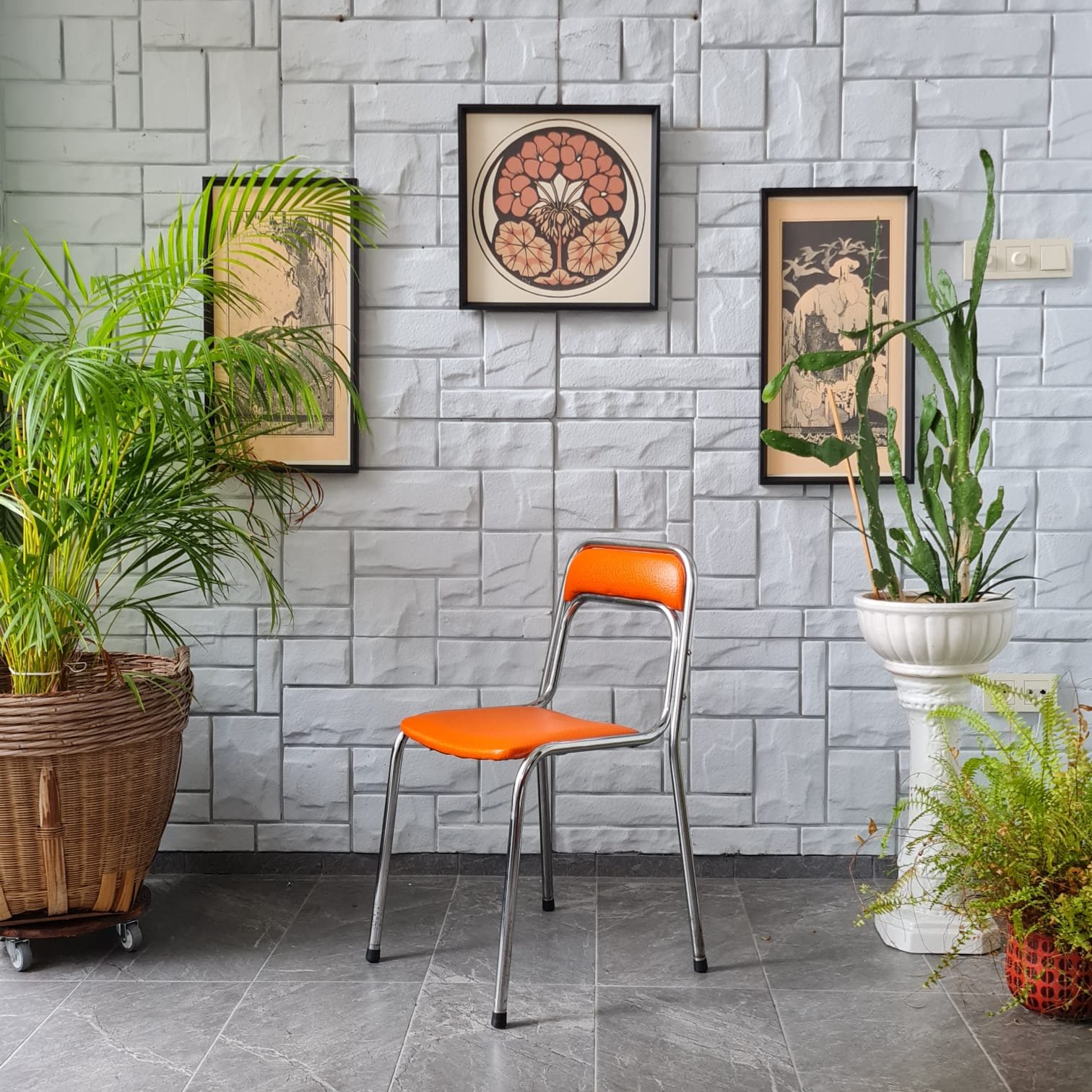 1970’lerde üretilmiş sandalyeler, krom iskeletleriyle dikkat çekiyor. Hem estetik hem fonksiyonel açıdan göz dolduran bu parçalar, mekânınıza retro bir hava katacak.