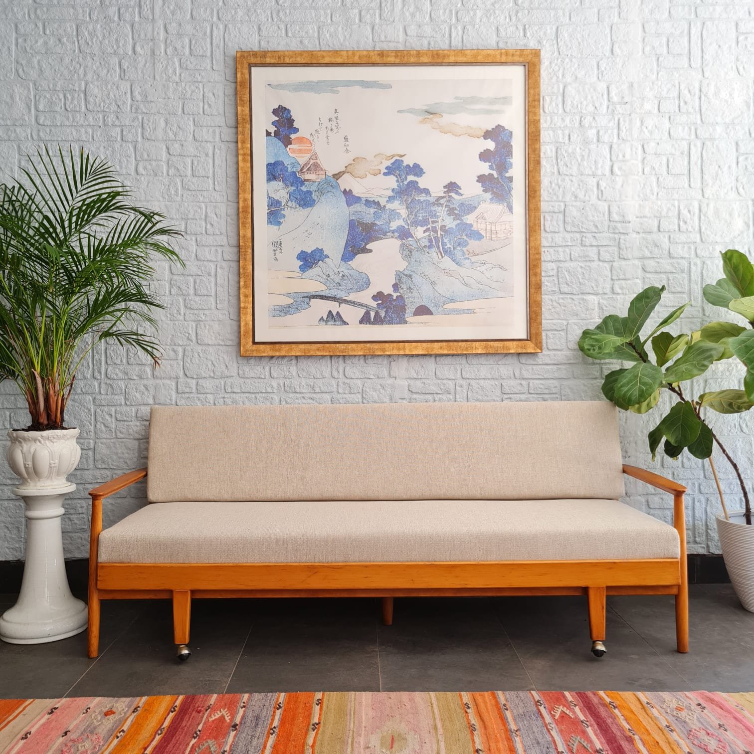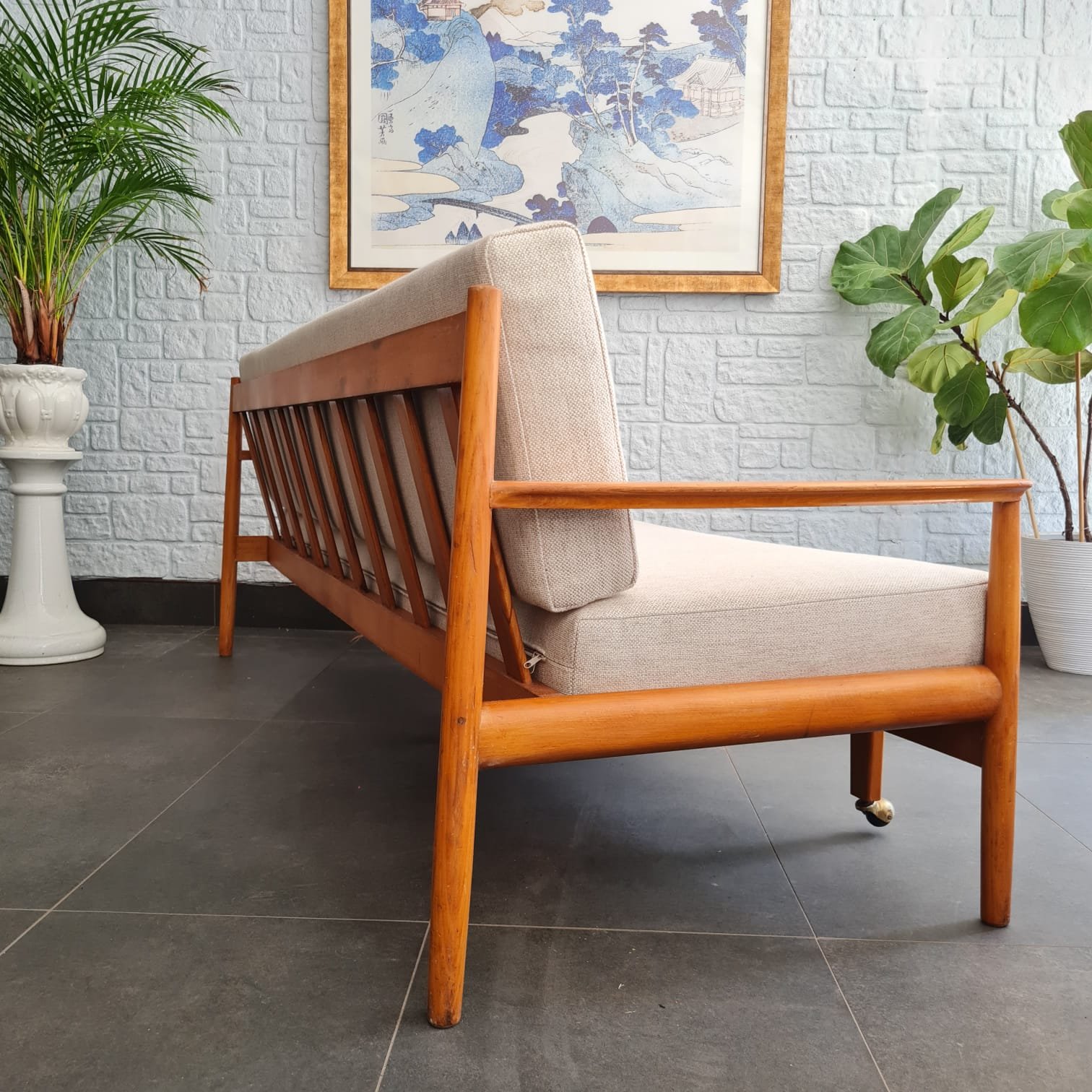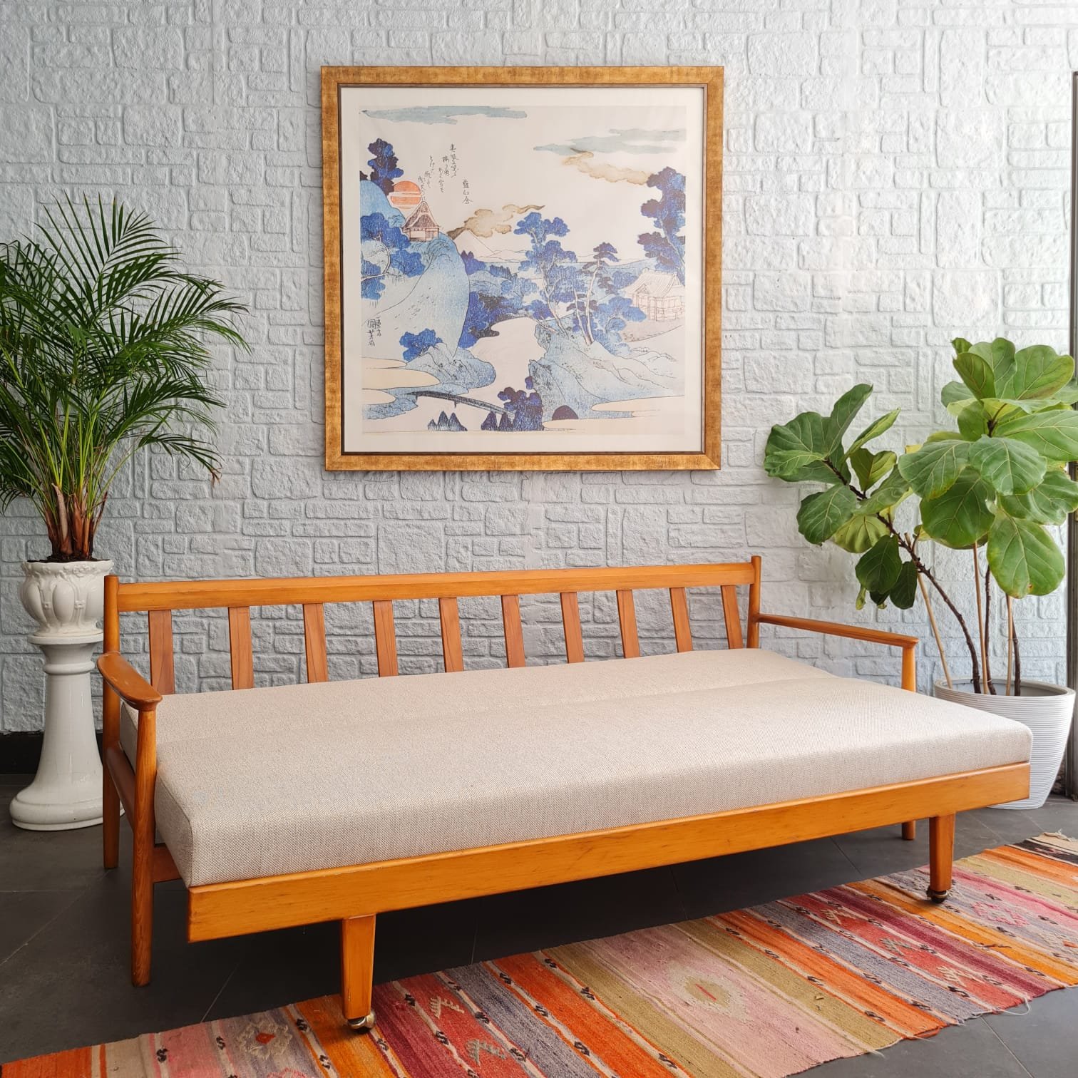 Kusursuz kondisyonda, sağlam yapısı ve zamansız formuyla hem fonksiyonel hem estetik bir parça. Hem oturma alanı hem de gerektiğinde yatak olarak kullanılabilecek çok yönlü tasarımıyla İskandinav stilinin yalın çizgilerini yansıtıyor.