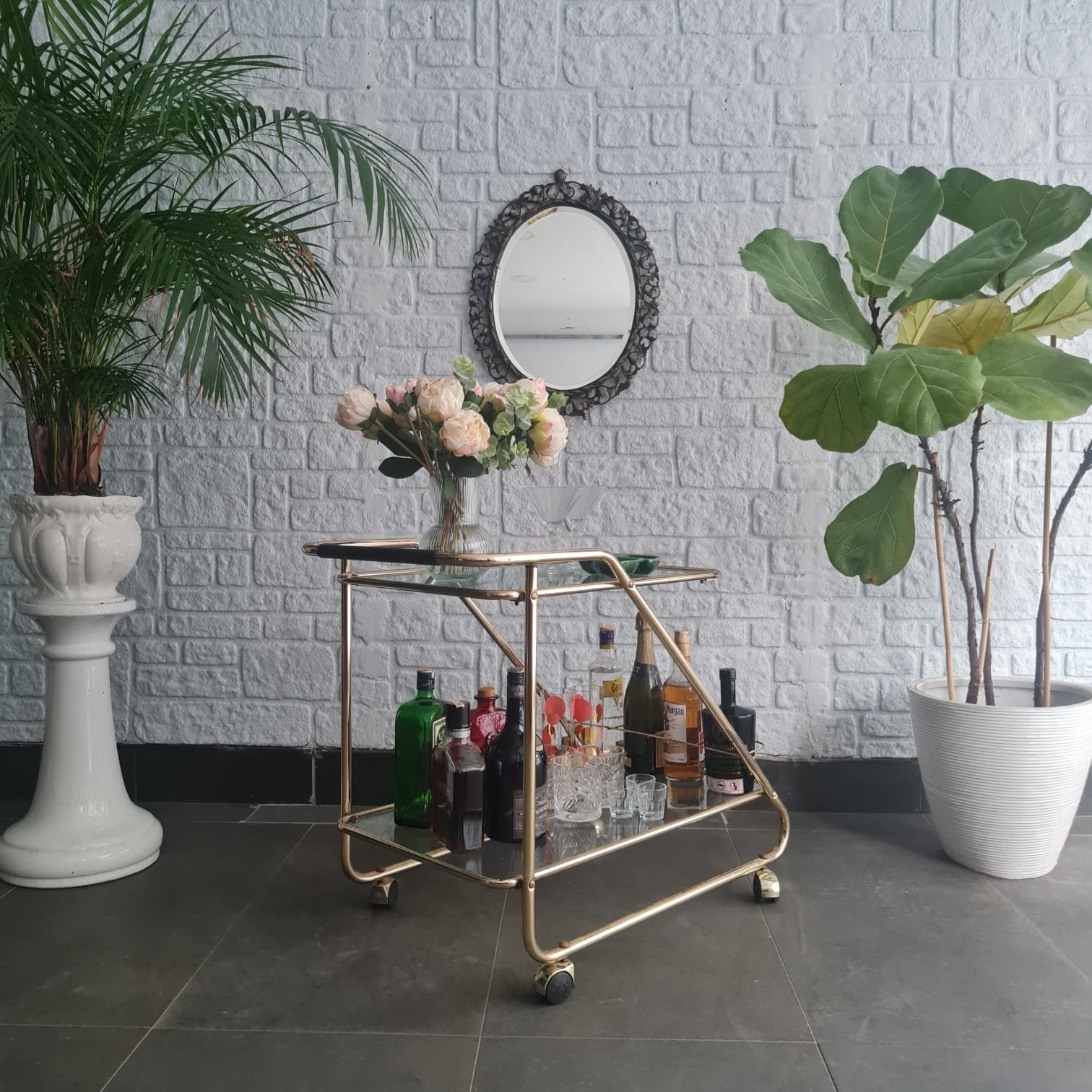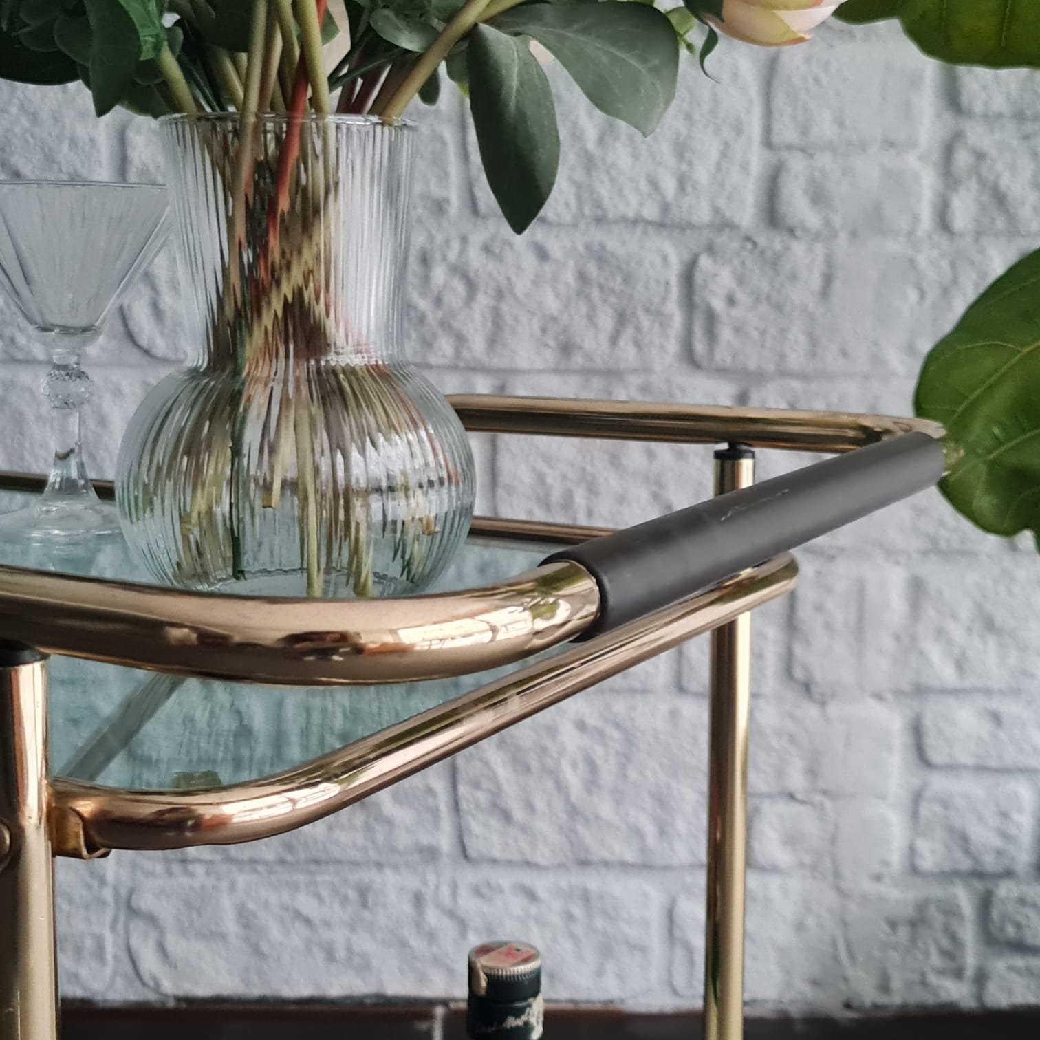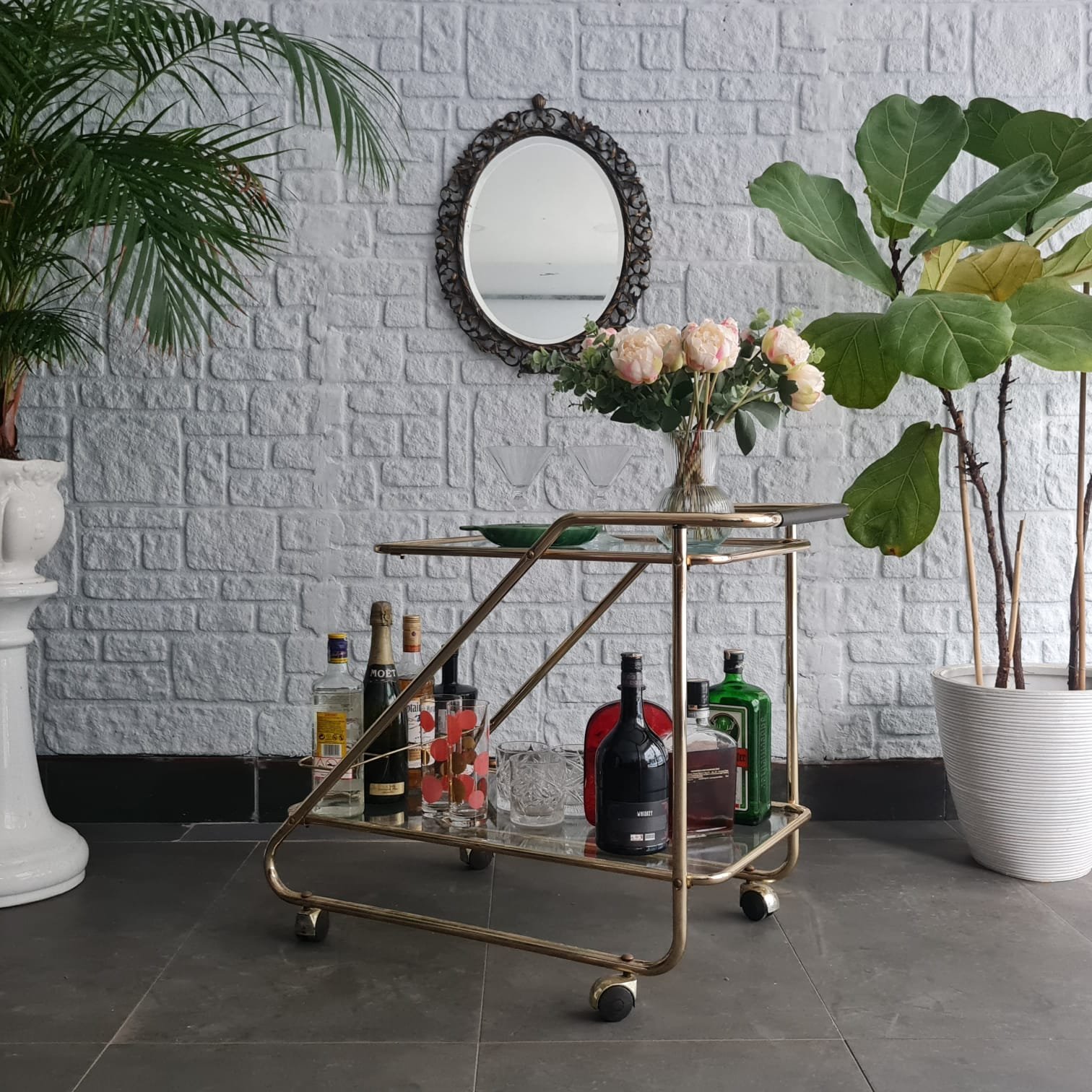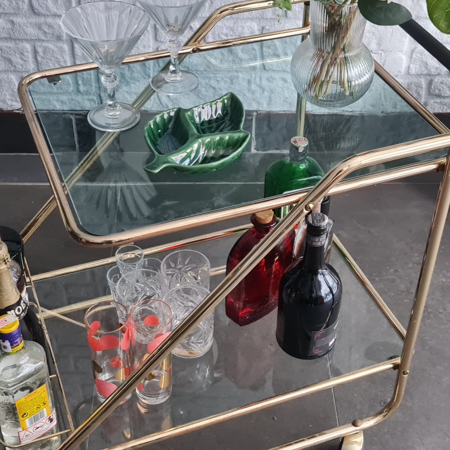 İki katlı cam raflı yapı. Tekerlekli formu sayesinde servis arabası, bar arabası ya da yardımcı sehpa olarak kullanılabilir. Mid-century dönemin sade ve dengeli çizgilerini taşıyor.