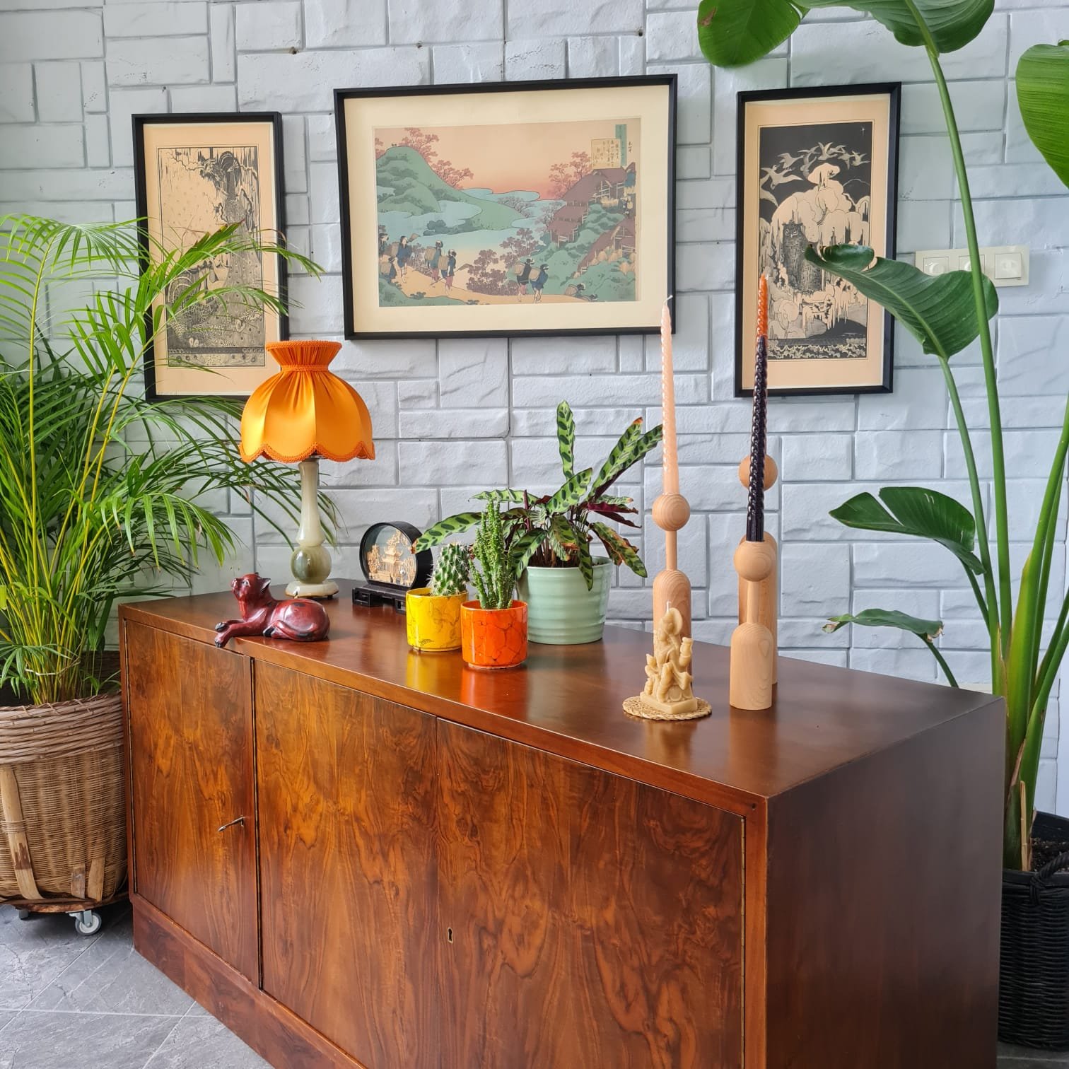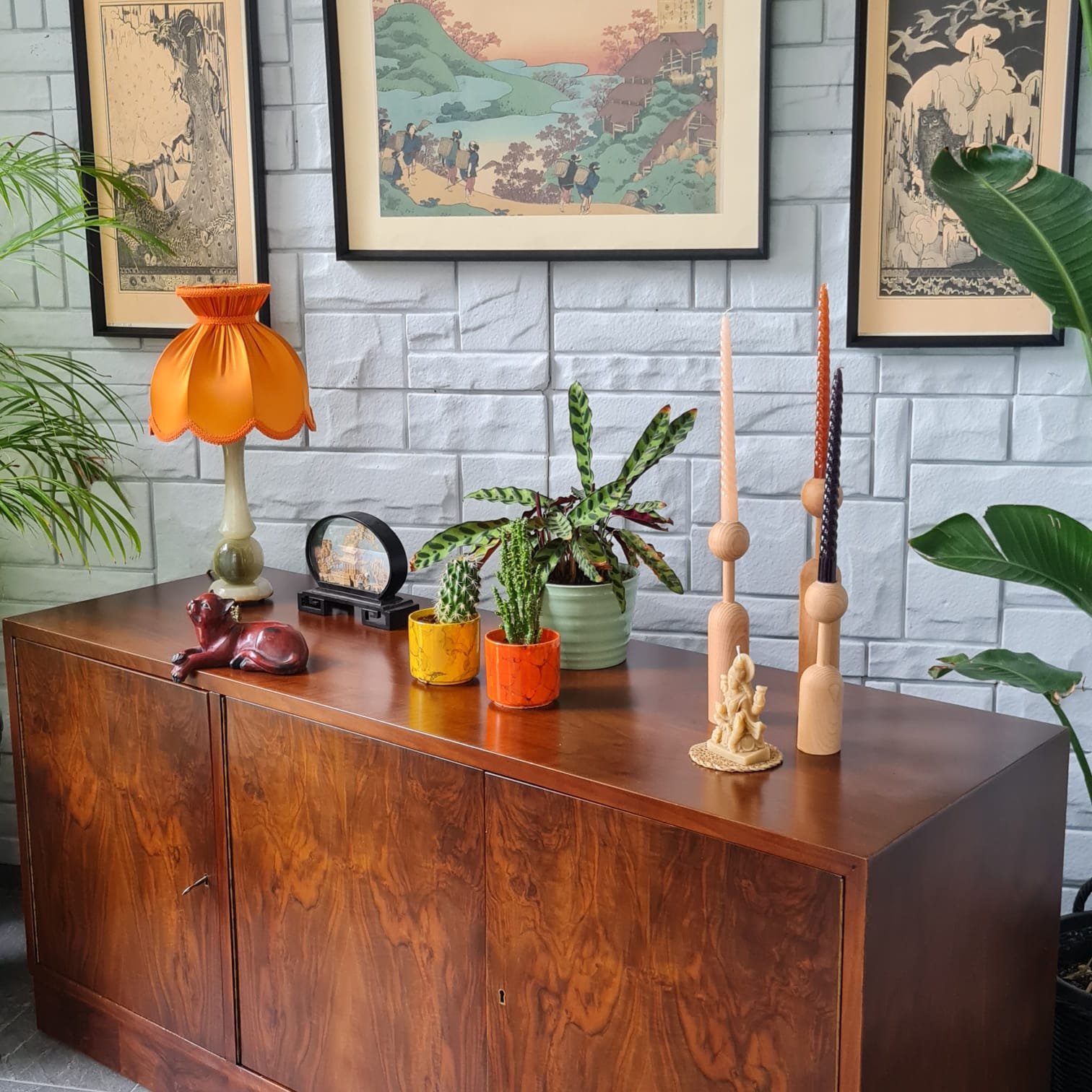 Göz alıcı bir zarafet ve işlevsellikle evinize değer katacak Danish vintage büfe, 1970’lerde üretilmiş. Zamanın modasının ötesinde duran tasarımıyla dikkat çeken bu parça, hem dekoratif bir aksesuar hem de pratik bir depolama çözümü sunuyor.
