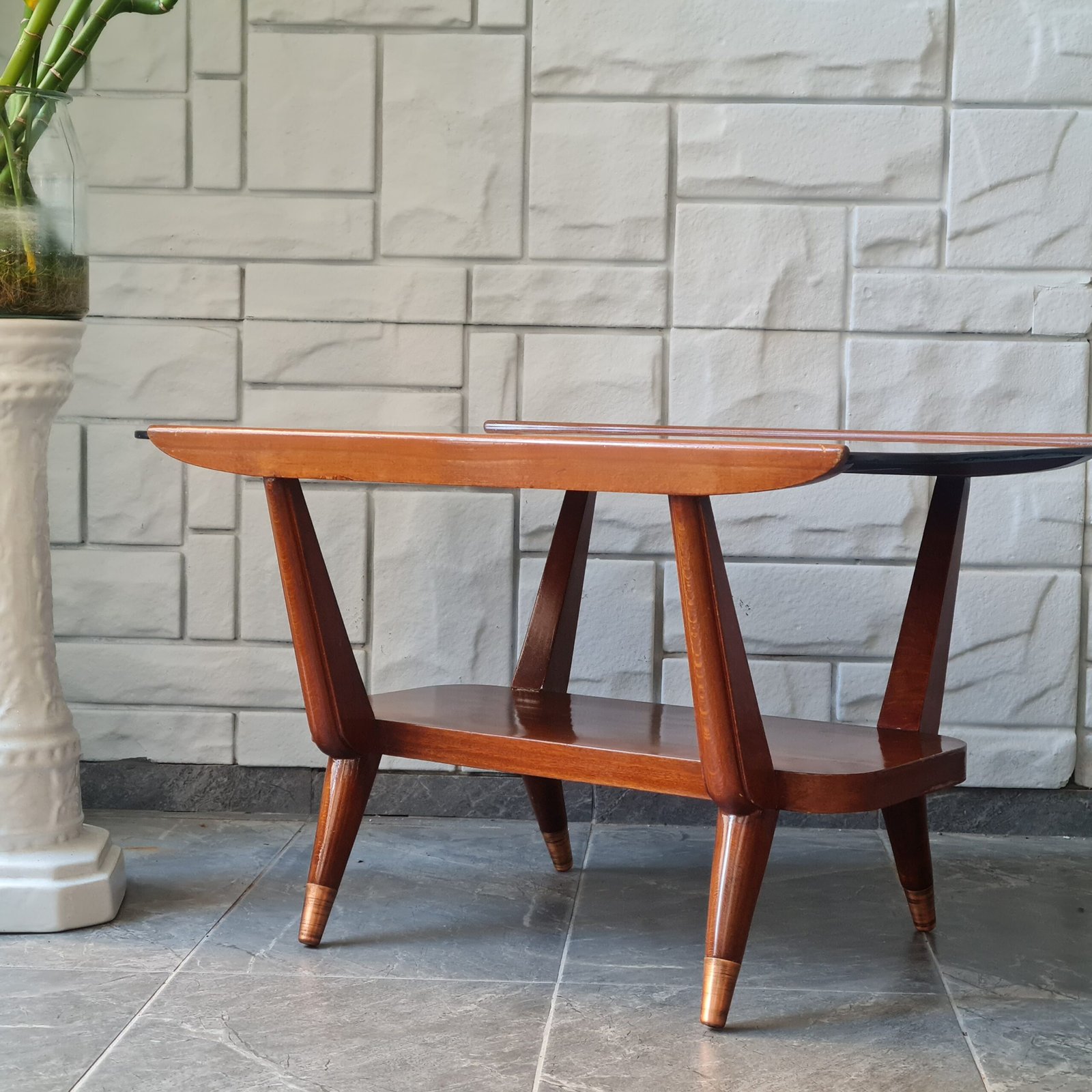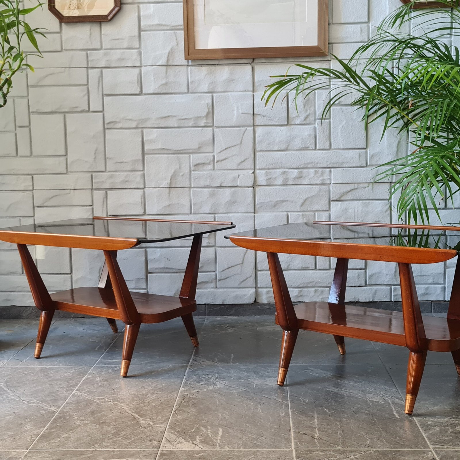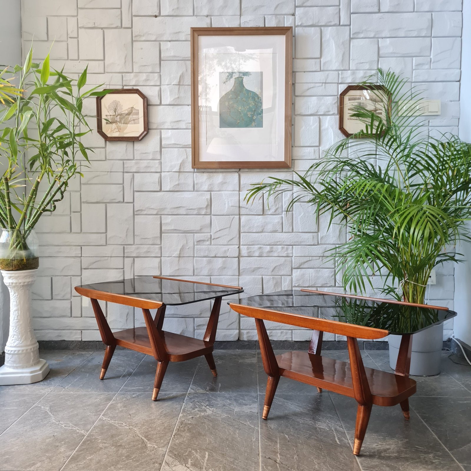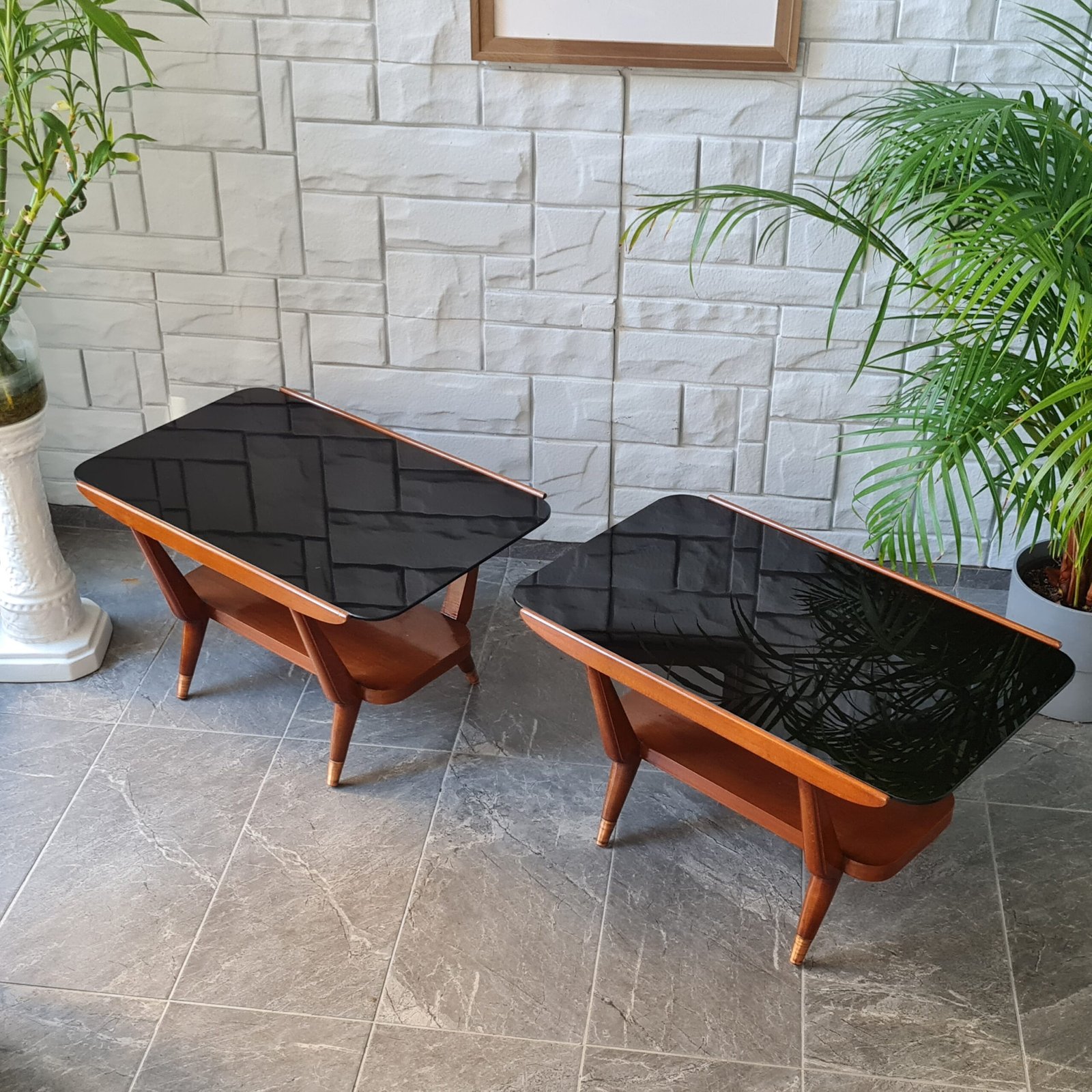 1970’lerde üretilmiş İskandinav tarzı yan sehpalar, orijinal camları ve cilası ile dikkat çekiyor. Bu estetik harikalar, vintage sevenler için mükemmel bir seçenek.
