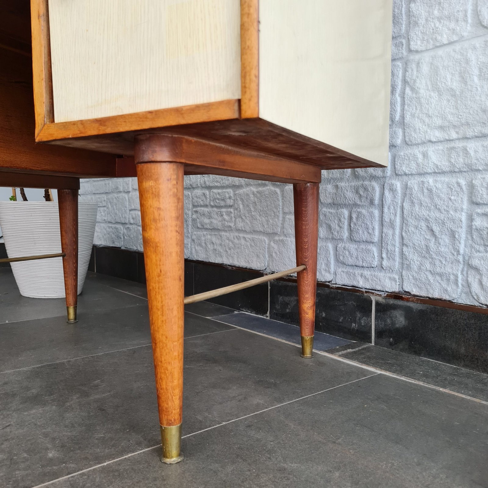 Formika çalışma masasına ayrı bir şıklık ve zarafet katan pirinç pabuçları ve kulpları, mobilyanın genel tasarımına sofistike bir hava katıyor. Bu detaylar, masayı eşsiz kılan önemli unsurlardan. Ürün stoku bir adetle sınırlı.