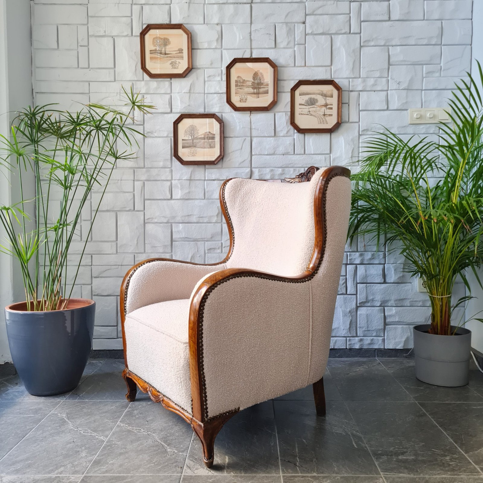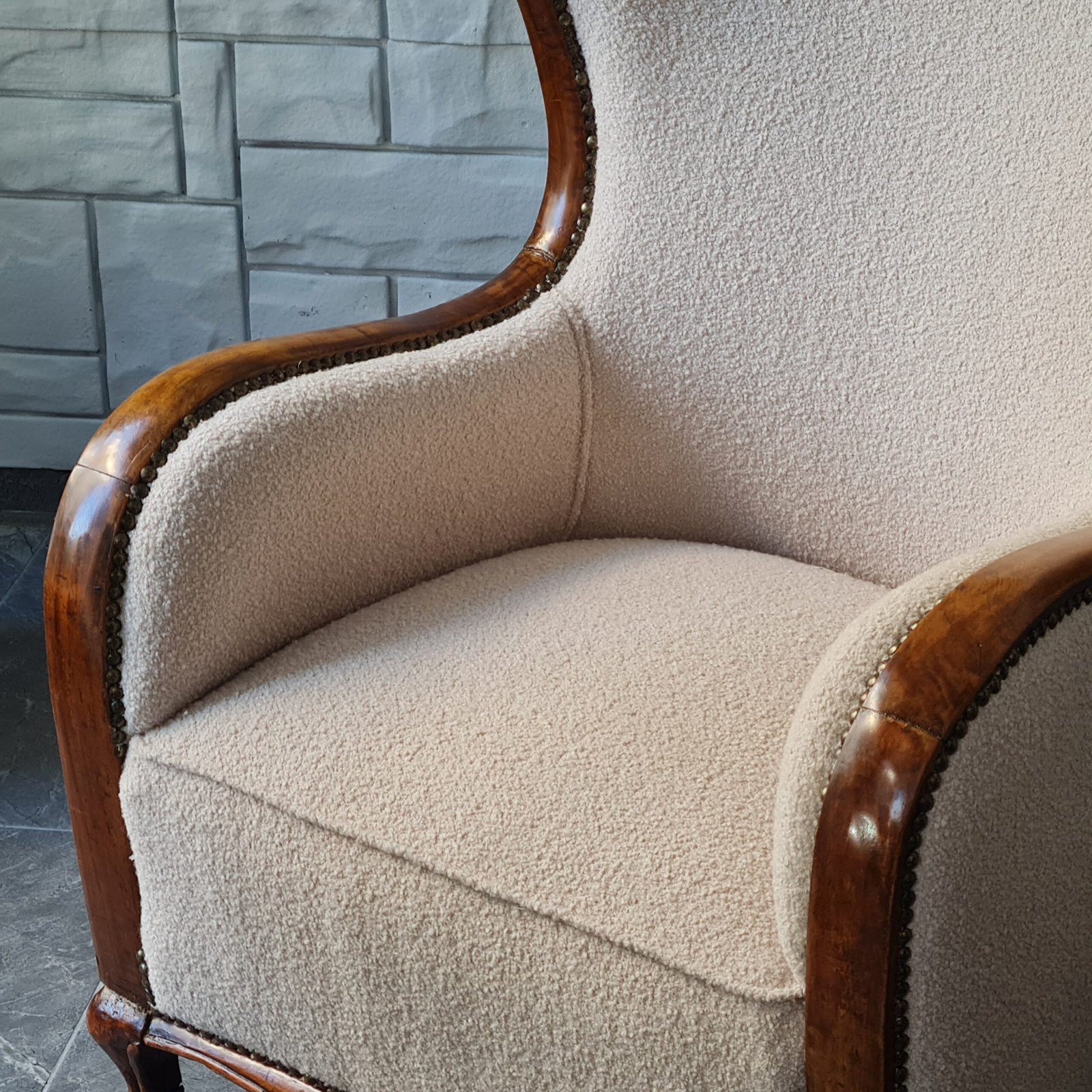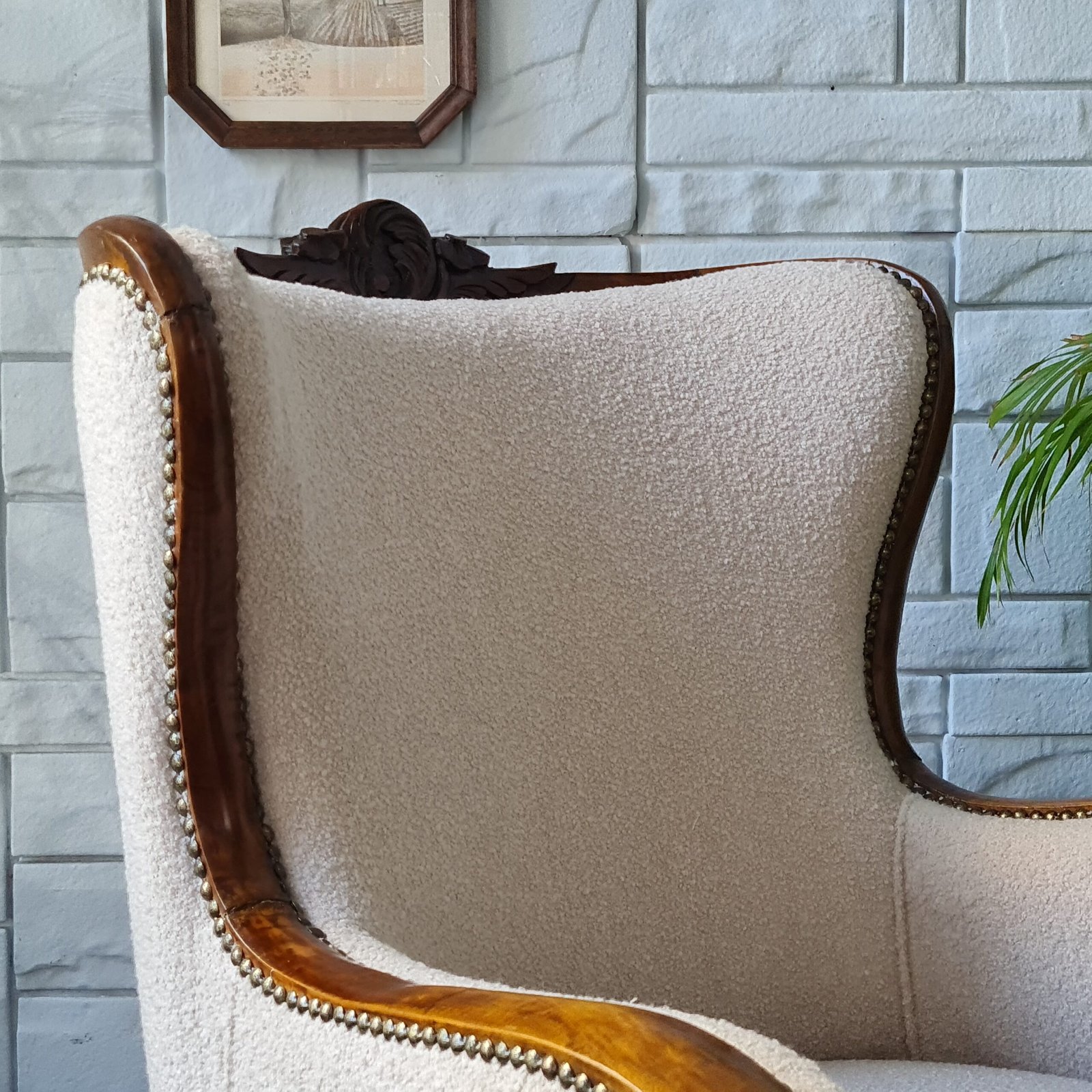 Masif ceviz iskeletli berjerler, 1950’lerin zarif tasarım anlayışını yansıtıyor. Bu dönemin klasik çizgileriyle dikkat çeken, kaliteli malzemelerden üretilmiş.
