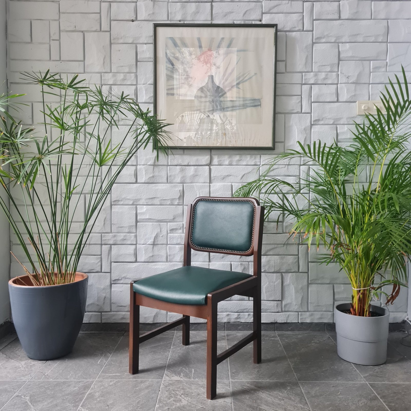 1970’lerde üretilmiş olan masif ceviz iskeletli sandalye, zarafeti ve fonksiyonelliği ile dikkat çekiyor. Bu eşsiz parça, hem estetik hem de kullanım açısından öne çıkıyor.