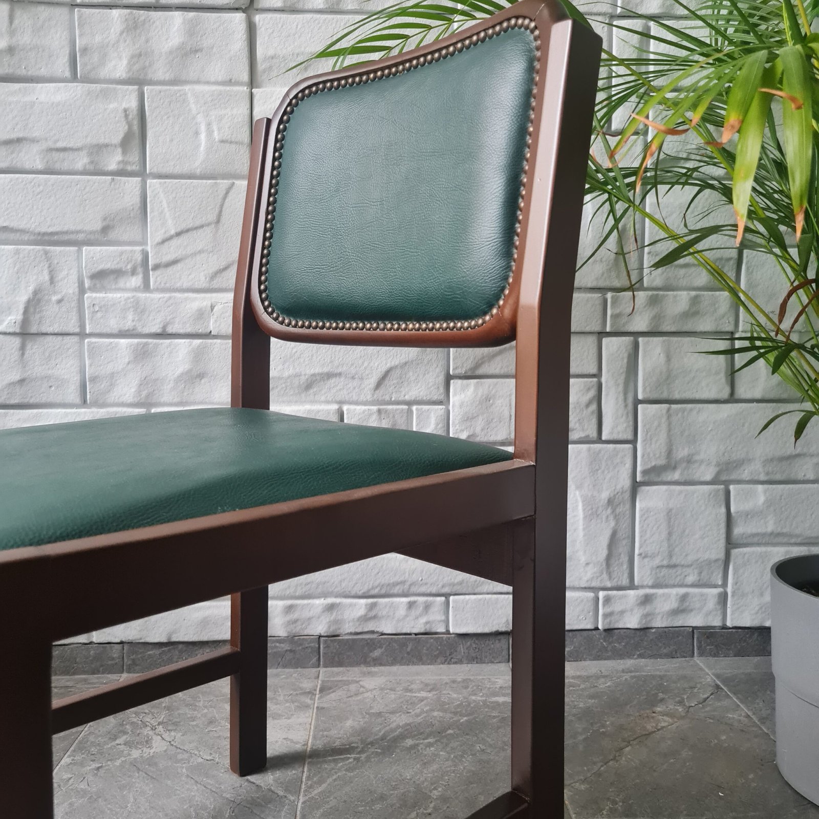 Dayanıklı masif ceviz iskeleti ile uzun ömürlü bir kullanım sunuyor. Orijinal deri döşemesi, kusursuza yakın kondisyonda. Cilası yenilenerek modern bir parıltı kazandırıldı.