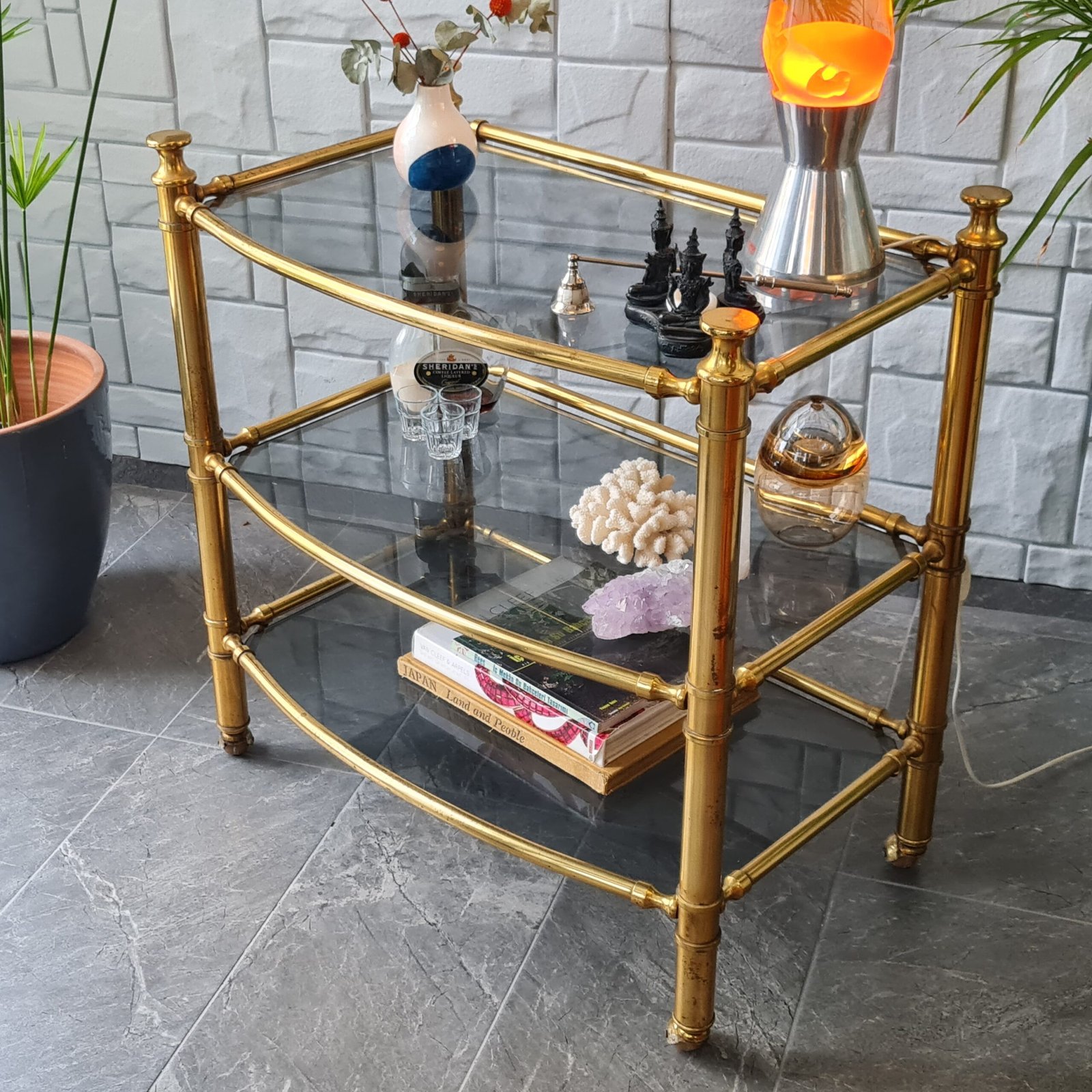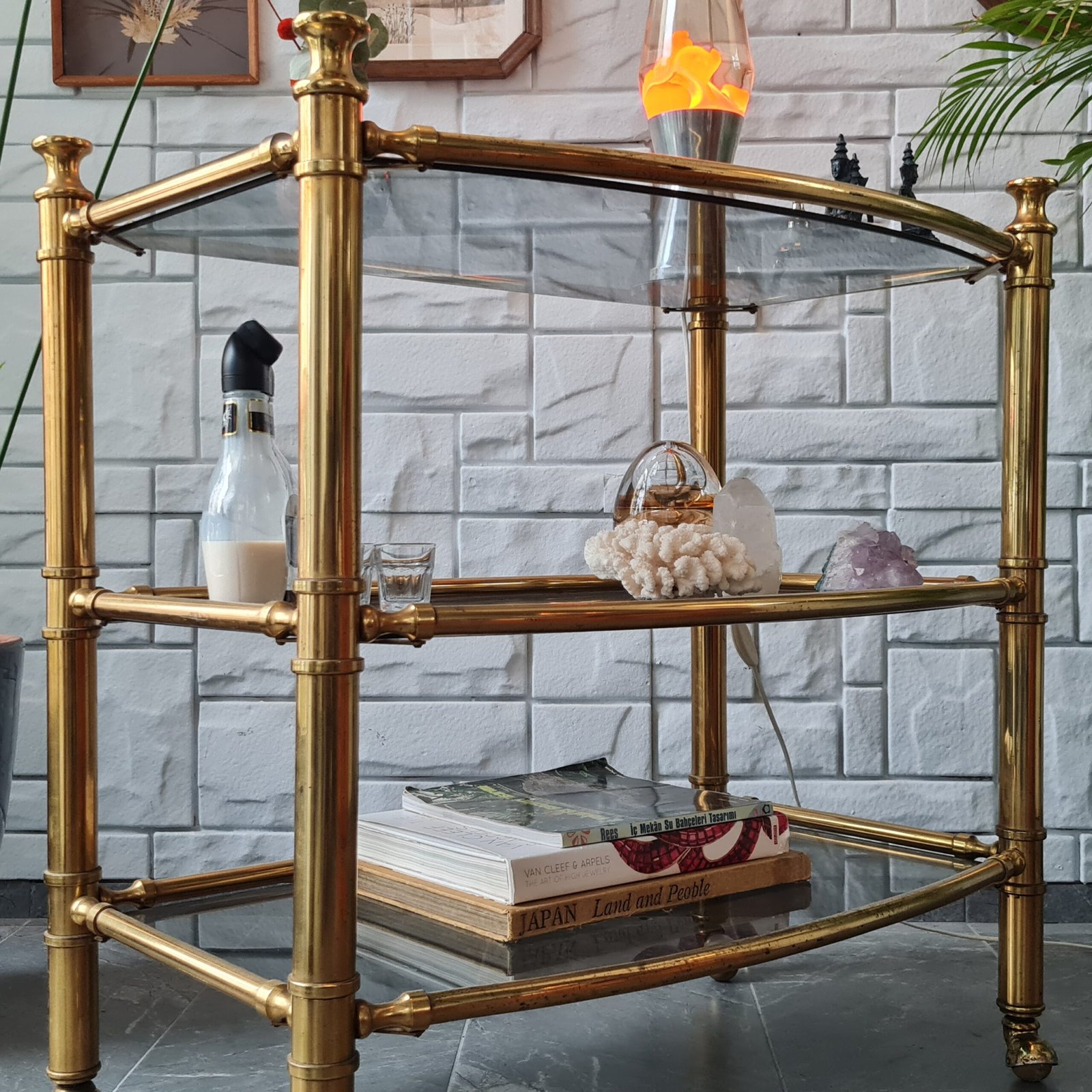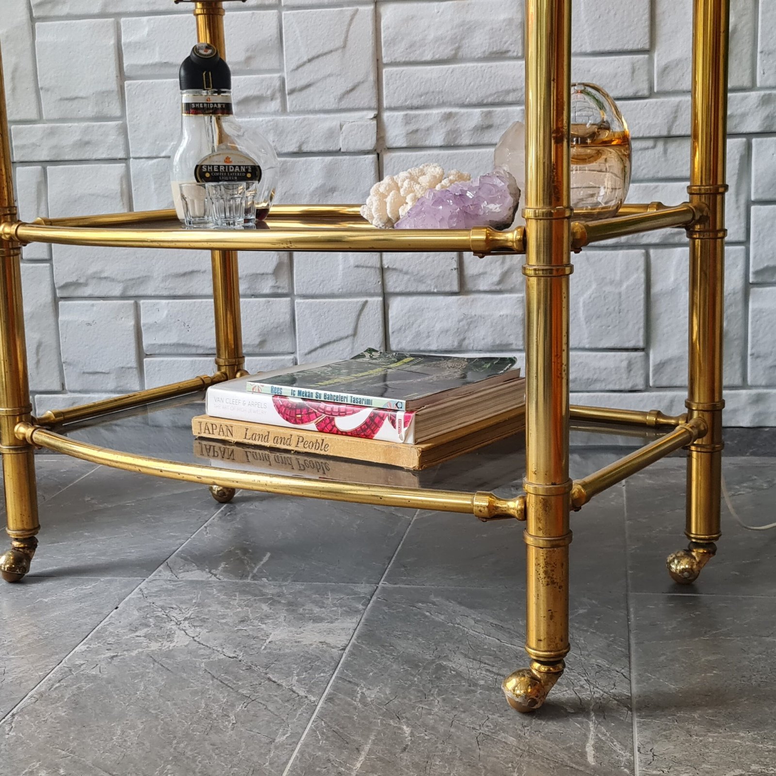 1980’lerde üretilmiş masif pirinç servis arabası, eşsiz bir vintage tasarıma sahip. Zarif ve dayanıklı yapısıyla dikkat çekiyor.