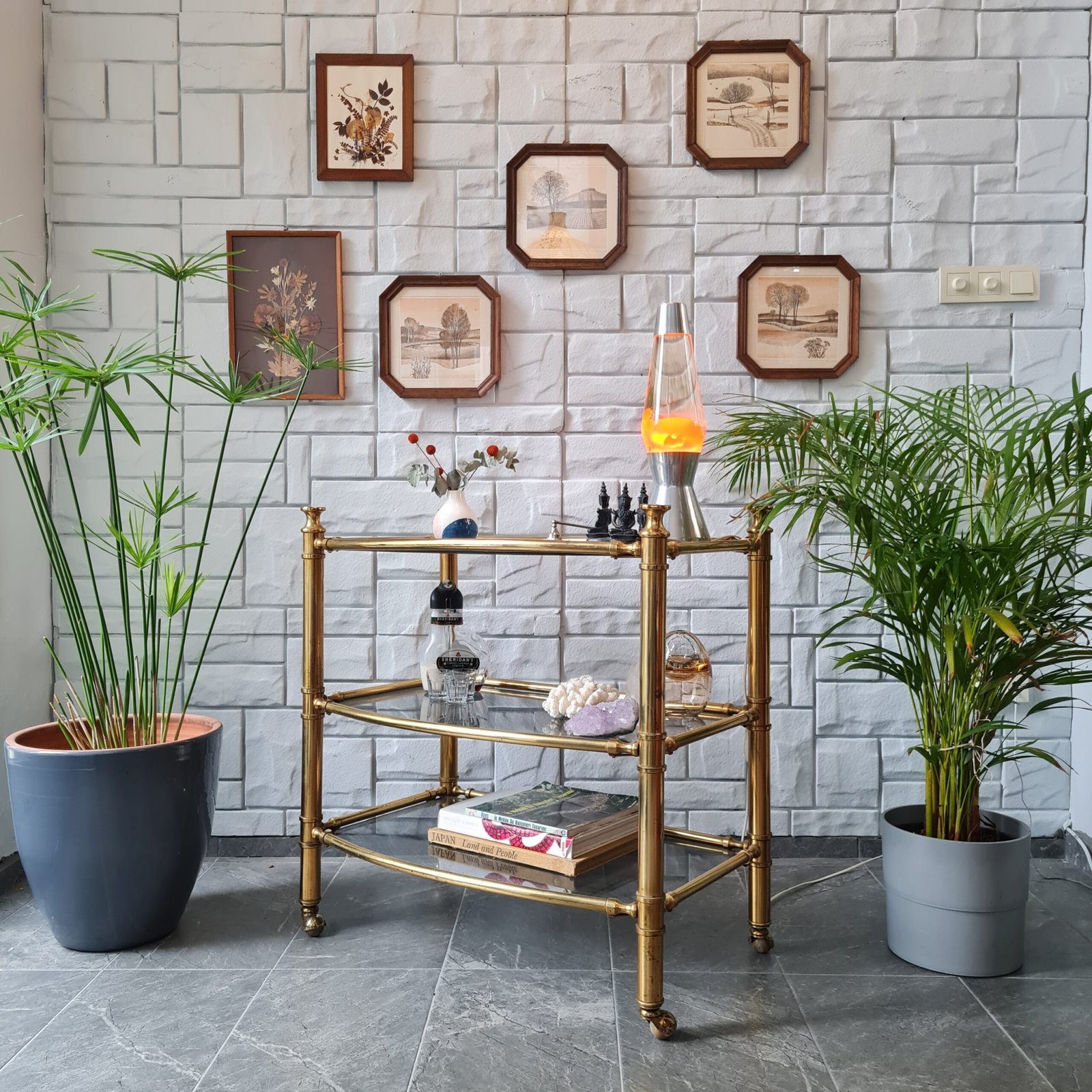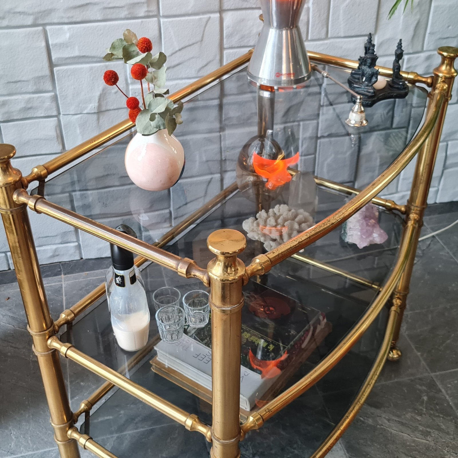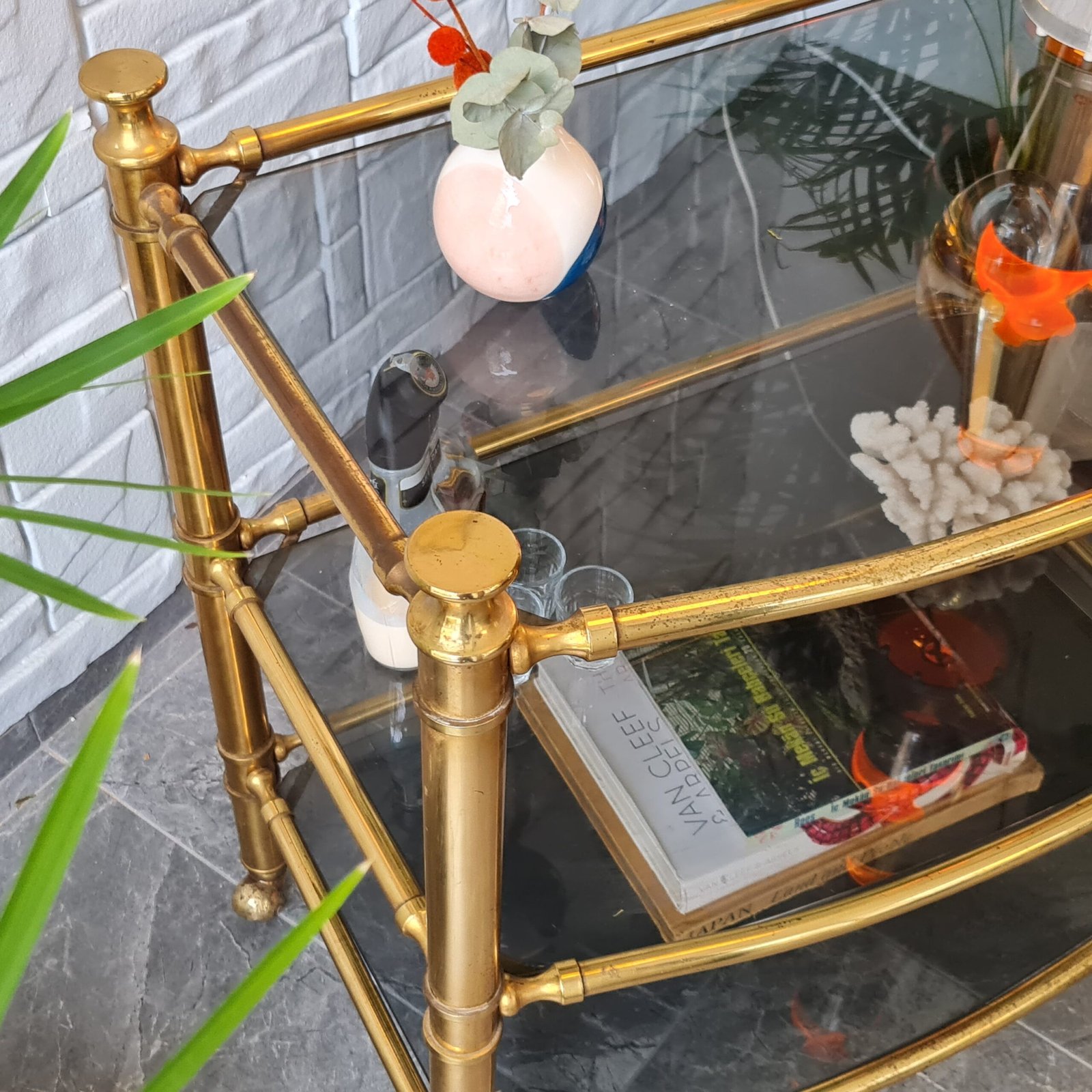 1980’lerde üretilmiş masif pirinç servis arabası, eşsiz bir vintage tasarıma sahip. Zarif ve dayanıklı yapısıyla dikkat çekiyor.