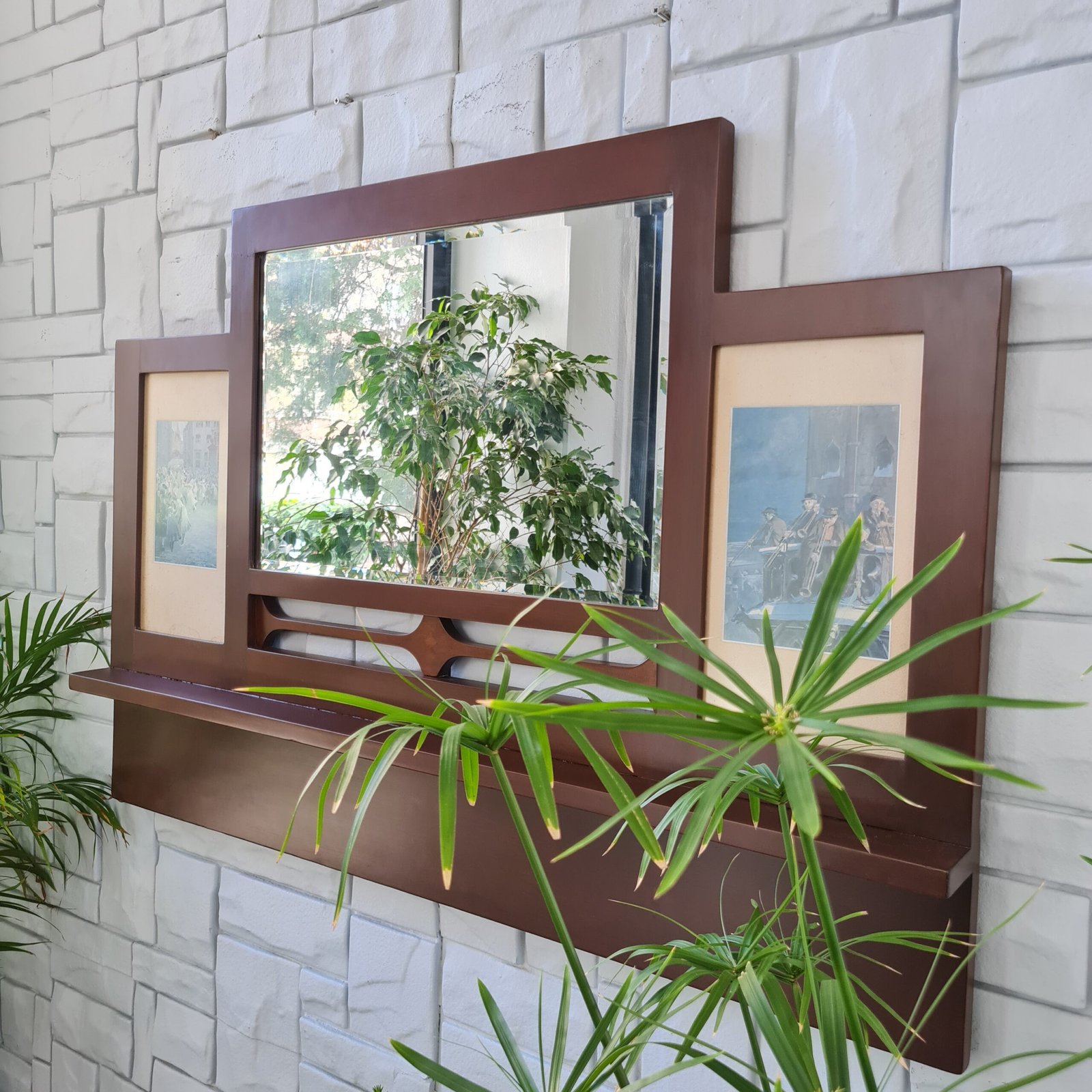 Aynanın altında bulunan ince raf, küçük objeleri sergilemek için mükemmel bir alan sunuyor. Bu sayede hem estetik hem de fonksiyonel bir kullanım imkânı sağlıyor. Ürün stoku bir adetle sınırlı.